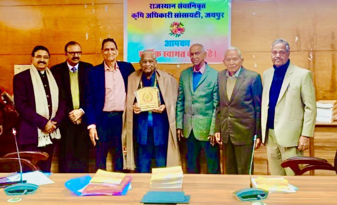 जयपुर में राज्य कृषि प्रबंध संस्थान दुर्गापुरा के सभागार में आयोजित राज्य स्तरीय मीटिंग में प्रसिद्ध समाजसेवी डॉ. राजेन्द्र कुमार जैन का सार्वजनिक अभिनंदन किया गया। इस मीटिंग में कृषि विभाग, कृषि विश्वविद्यालय, बैंकिंग सेवा के प्रदेश भर से सेवा निवृत्त कृषि से जुड़े अधिकारियों ने भाग लिया। कार्यक्रम में सोसायटी के सूचना एवं प्रसार मंत्री डा शंकर बाबू ने बताया कि इस मीटिंग में सोसायटी के वरिष्ठ सदस्य डॉ. राजेन्द्र कुमार जैन का 80 वर्ष की आयु प्राप्त करने और सोसायटी को विशेष सहयोग प्रदान करने पर माला दुपट्टा और शॉल ओढ़ाकर सार्वजनिक अभिनंदन किया गया तथा भामाशाह सम्मान के रूप में प्रतीक चिन्ह भेंट कर सम्मानित किया गया, जानकारी पर ज्ञात हुआ कि डॉ. राजेन्द्र जैन ने बेल्जियम से पी.एच.डी की उपाधि प्राप्त करके लंबे समय तक अपनी सेवाएं कृषि विभाग में दी थीं।