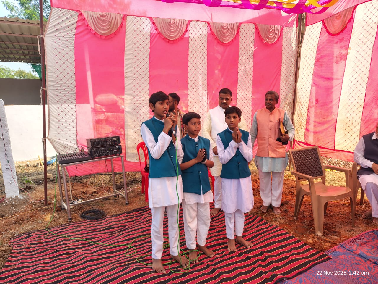 नवागढ़ क्षेत्र कमेटी के प्रचारमंत्री डॉ सुनील संचय ने बताया कि कार्यक्रम के शुभारंभ में गुरुकुलम के छात्रों आदित्य, आदर्श और अक्षत द्वारा मंगलाचरण एवं स्वागत गीत के साथ हुआ। क्षेत्र में पहलीबार आयोजित इस महत्वपूर्ण कार्यक्रम में समाज के अनेक गणमान्य लोग उपस्थित रहे। गौशाला संयोजकों सुरेंद्र जैन सौजना, संदीप एडवोकेट, रविन्द्र मैंगुवा द्वारा सभी अतिथियों का शॉल, माला एवं प्रतीक-चिह्न देकर सम्मान किया गया। कार्यक्रम का कुशल संचालन पंडित इंद्रकुमार जैन ककरवाहा द्वारा किया गया।