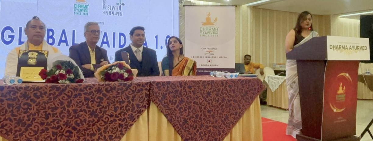 धर्म आयुर्वेद, भोपाल एवं दक्षिण कोरिया के वेलपार्क हॉस्पिटल के संयुक्त तत्वावधान में यह तीन दिवसीय अंतरराष्ट्रीय आयोजन 14 से 16 जनवरी 2026 तक सम्पन्न हुआ। कार्यक्रम में भारत सहित विभिन्न देशों से 40 से अधिक अनुभवी आयुर्वेद चिकित्सकों ने सहभागिता की।