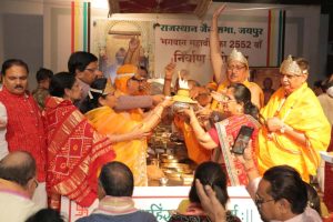 समाजश्रेष्ठी सुरुचि – हरमिंदर,सुकृति – विवेक, सुरभि – हेमन्त गोधा ने भगवान महावीर के चित्र के समक्ष दीप प्रज्जवलन किया । समाजश्रेष्ठी अशोक – शकुन्तला, अंकित चांदवाड एवं आर ए एस देवेन्द्र जैन गौरवमयी अतिथि तथा राजेश – अनिता जैन, डॉ. विवेक जैन, सीए विरेन्द्र जैन विशिष्ट अतिथि के रूप में शामिल हुए, कार्यक्रम में राजस्थान जैन सभा की ओर से अध्यक्ष सुभाष चन्द जैन, वरिष्ठ उपाध्यक्ष प्रदीप जैन, उपाध्यक्ष विनोद जैन कोटखावदा, महामंत्री मनीष बैद,मंत्री यशकमल अजमेरा, संयुक्त मंत्री आर के जैन रेल्वे, कार्यक्रम मुख्य संयोजक भारतभूषण जैन, संयोजक पदम चन्द बिलाला, सुधीर गंगवाल, धीरज पाटनी, नीतू जैन, वर्षा अजमेरा, राजस्थान जैन सभा जयपुर के कार्यकारिणी सदस्य कमल बाबू जैन, राजीव पाटनी, अनिल छाबड़ा, राकेश गोधा, सुभाष बज, राखी जैन, चेतन जैन निमोडिया, एडवोकेट राजेश काला, दर्शन बाकलीवाल, मनीष सोगानी, अशोक जैन नेता, प्रिया बडजात्या सहित शकुन्तला पाण्डया, दीपिका जैनकोटखावदा, रचना बैद, शालिनी अजमेरा ने सभी अतिथियों का भावभीना स्वागत एवं सम्मान किया। इस मौके पर क्षुल्लक ध्यान सागर महाराज ने अपने उदबोधन में भगवान महावीर के सिद्धांतों एवं शिक्षाओं पर प्रकाश डालते हुए निर्वाण उत्सव मनाने का महत्व बताया। इससे पूर्व मुख्य निर्वाण लाडू अर्पण कर्ता परिवार द्वारा क्षुल्लक महाराज का पाद पक्षालन कर पुण्यार्जन करते हुए धर्म लाभ प्राप्त किया।कार्यक्रम में सभा के उपाध्यक्ष विनोद जैन ‘कोटखावदा’ ने बताया कि भगवान महावीर की महाआरती के बाद कार्यक्रम का समापन हुआ कार्यक्रम में मुख्य संयोजक भारतभूषण जैन ने बताया कि इस आयोजन में पहली बार दिगम्बर जैन अतिशय क्षेत्र श्री महावीर जी की अखण्ड ज्योति की जोत से भगवान महावीर के चित्र के समक्ष दीप प्रज्जवलन किया गया तथा ‘महावीर’ नाम के 24 श्रावकों को पूजा करने का सौभाग्य प्राप्त हुआ कार्यक्रम में पर्यावरण संरक्षण के मध्य नजर समारोह में आने वाले सभी श्रद्धालुओं को गमले में एक पेड भेंट किया गया इस मौके पर दिगम्बर जैन अतिशय क्षेत्र श्री महावीर जी के पूर्व अध्यक्ष जस्टिस एन के जैन, सुरेश सबलावत, महेश काला, राज कुमार सेठी, महेश चांदवाड, वैध अशोक गोधा, सुधीर गोधा, प्रवीण बडजात्या,राजेन्द्र सेठी, डॉ पी सी जैन, राकेश छाबड़ा सहित अन्य गणमान्य श्रेष्ठीजनों ने सहभागिता निभाई कार्यक्रम में मंच संचालन उपाध्यक्ष विनोद जैन कोटखावदा एवं महामंत्री मनीष बैद ने किया। आभार मंत्री यशकमल अजमेरा ने व्यक्त किया।महावीर के निर्वाण लाडू महोत्सव परके अवसर पर 250 से अधिक दिगम्बर जैन मंदिरों में पूजा अर्चना सहित निर्वाण लाडू चढाने के विशेष आयोजन किए गए, पूजा के दौरान निर्वाण काण्ड भाषा के सा