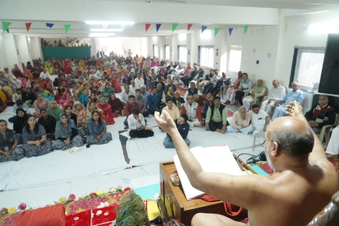 मंगलाचरणपाठ श्रीमती मैना जी, साधना जी, मीना गंगवाल के द्वारा किया गया । गुरुदेव जय कीर्ति जी महाराज ने आगे आज जैन धर्म की महानता के अद्भुत भाव पूर्ण प्रसंग सुनाए .. राम लक्ष्मण सीता आगे बढ़ते हुए कपिल ब्राह्मण के घर पहुंचे,,, कपिल ब्राह्मण द्वारा उनका अपमान करके घर से निकलना फिर एक वृक्ष के विश्राम करते हुए देखकर यक्ष के द्वारा सुंदर नगरी का निर्माण करना तत्पश्चात कपिल ब्राह्मण को वन में जाना… भव्य नगर देखकर आश्चर्य चकित होना ।मुनिराज से धर्मोपदेश सुनने के बाद पूरा जीवन ही परिवर्तित हो गया और उसने अपनी पत्नी को भी सारे उपदेश सुनाएं और दोनों ने अणुव्रत को अंगीकार किया और फिर प्रभु श्री राम से मिलने के बाद उनकी दरिद्रता दूर हो गई बहुत पश्चाताप होने के बाद में उन्होंने “अरिहंत नाम के रसायन” को प्राप्त करके “जिनदीक्षा ” लेने का निर्णय किया और जिन शासन के पथ पर आरूढ़ होकर अपने जीवन को धन्य कर लिया।और उधर लक्ष्मण का विवाह वरमाला के साथ में हुआ भरत के निर्बाध राज्य को बाधा उत्पन्न करने के इच्छुक अतिवीर्य राजा से राम लक्ष्मण का युद्ध , युद्ध में पराजित अतिवीर्य राजा को संसार से वैराग्य हुआ जिससे उसने निर्ग्रंथ पद धारण कर लिया।राम लक्ष्मण सीता आगे बढ़ते हुए वंशधर पर्वत पहुँच गये वहां द्वय मुनिराज को ध्यानमय देखा द्वय मुनिराज के ऊपर आए उपसर्ग को दूर किया जिससे द्वय मुनिराज को केवल ज्ञान हो गया उन केवलज्ञानी देशभूषण कुलभूषण मुनिराज की वंदना करके वहां से प्रस्थान किया।तत् पश्चात एक नदी के किनारे पहुंचे वहां सीता ने उत्तमोतम द्रव्यों से भोजन बनाया एवं गुप्ति सुगुप्ति नामक दो चारण ऋद्धि मुनिराज को नवादा भक्ति पूर्वक आहार दिया वही एक कुरूप गिद्ध पक्षी (जटायु) ने द्वय मुनिराज के चरणोदक सेवन से उसका शरीर रत्नमय सुंदर बन गया