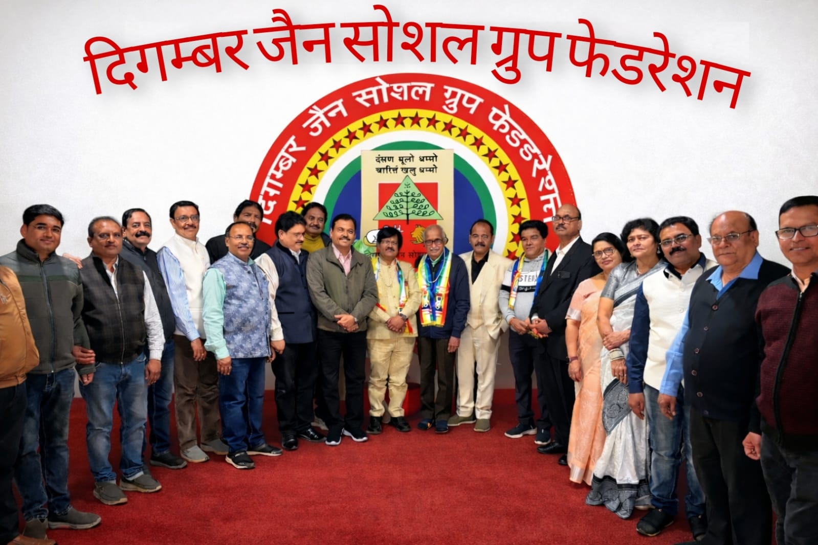 तत्पश्चात राष्ट्रीय अध्यक्ष, राष्ट्रीय महासचिव एवं संयुक्त महासचिव ने दिगम्बर जैन सोशल ग्रुप जबलपुर ‘मेन’ के वरिष्ठ सदस्यों एवं कार्यकारिणी सदस्यों से सौजन्य भेंट की। इस अवसर पर ग्रुप के नव-नेतृत्व (2026) द्वारा फेडरेशन के मूल सिद्धांतों के अनुरूप वर्ष भर की प्रस्तावित कार्य योजनाओं के बारे फेडरेशन के राष्ट्रीय नेतृत्व को अवगत करवाया।