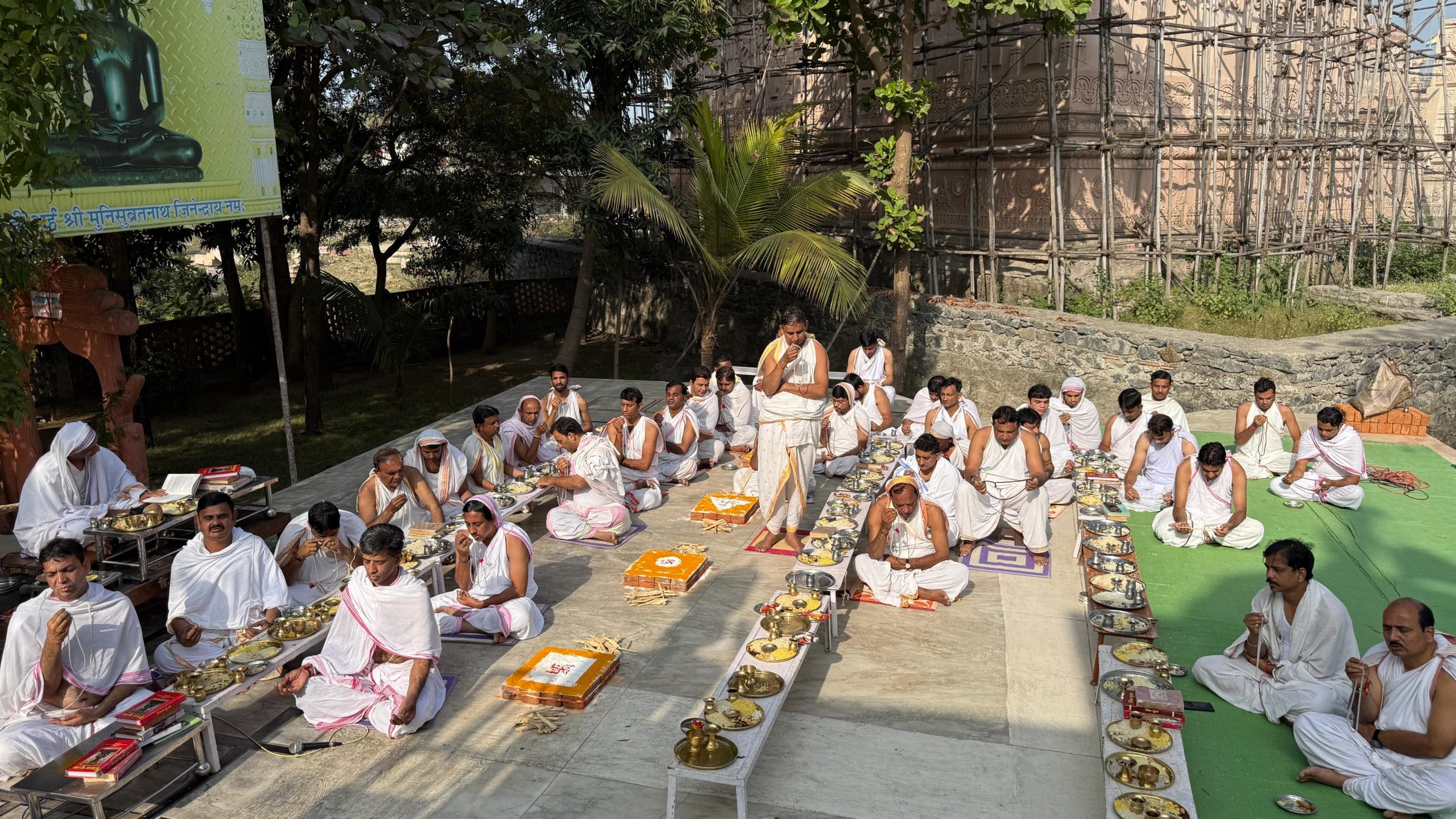 नौगामा शहर में नव वर्ष 2025 की शुभकामनाओं के साथ प्रातः आदिनाथ मंदिर ,भगवान महावीर समवरण में विशेष शांति धारा अभिषेक के बाद तीर्थ क्षेत्र सुखोदय में भगवान महावीर स्वामी की प्रतिमा का विशेष शांति धारा अभिषेक किया गया अभिषेक करने का प्रथम सौभाग्य नानावटी श्रीपाल, पिंडारमियां आदित्य, नानावटी सुभाष, गांधी विपुल ,पंचोरी जितेंद्र को प्राप्त हुआ इस अवसर पर दीप प्रज्वलित करने का सौभाग्य गांधी मनीष कुमार एवं मंगल कलश स्थापना का सौभाग्य गांधी विपुल को प्राप्त हुआ कार्यक्रम में विधानाचार्य रमेश चंद्र गांधी के सानिध्य में देव ,शास्त्र, गुरु की पूजन, णमोकार मंत्र की पूजन के बाद नवयुक मंडल के सदस्यों द्वारा 51000 नवकार महामंत्र का जाप किया गया मंत्र जाप के पश्चात विश्व शांति महायज्ञ की आहुतियां दी गई इस अवसर पर विधानाचार्य रमेश चंद्र गांधी ने सभी को नव वर्ष की शुभकामनाएं देते हुए कहा कि संपूर्ण विश्व में सुख शांति बनी रहे एवं नया वर्ष 2025 सब का मंगलमय हो इस अवसर पर नवयुक मंडल अध्यक्ष मुकेश गांधी ने बताया कि प्रतिवर्ष की भांति इस वर्ष भी सुखोदय तीर्थ में णमोकार मंत्र का जाप किया गया है सभी युवाओं द्वारा जो सहयोग प्राप्त हुआ है सभी को नव वर्ष हार्दिक शुभकामनाएं दी गई इस अवसर पर सभी ने प्रभु से कामना की की नवीन जिनालय जो बन रहा है शीघ्र बन कर कर तैयार हो जाए एवं नवीन प्रतिमा शीघ्र स्थापित हो ऐसी भावना रखी आज नव वर्ष के उपलक्ष में सुखोदय तीर्थ क्षेत्र नसिया जी में तीर्थ यात्रियों का ताता लगा रहा उक्त जानकारी जैन समाज प्रवक्ता सुरेश चंद्र गांधी द्वारा दी गई।