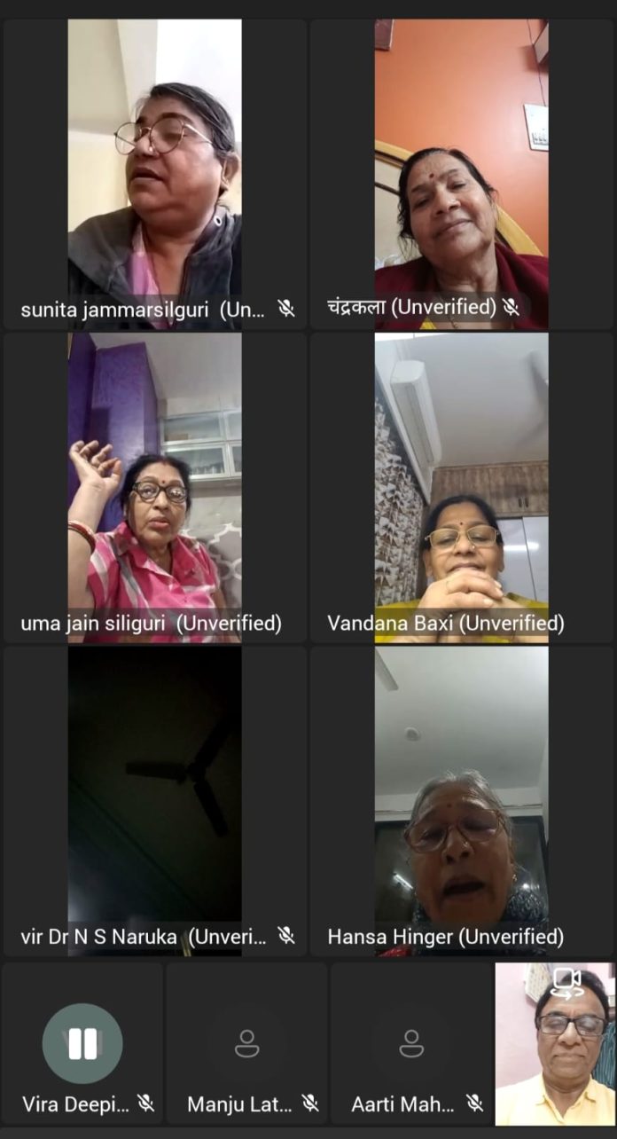 महावीर इंटरनेशनल की ई चौपाल में शनिवार होने से वक्ताओं को खुला मंच सुलभ कराया गया जिसमें विवाह गीतों की धूम सी मच गई। दादी नानी द्वारा सिखाए गए ओर मां और सासू मां द्वारा गुनगुनाए ठेठ देशी अंदाज़ के पारंपरिक ओर मारवाड़ी मेवाड़ी गीतों ने समा ही बांध दिया। इस दौरान प्री वेडिंग पर जम कर विरोध स्वर व्यक्त किए गए। विवाह आयोजनों में भोजन के अपव्यय और प्री वेडिंग को वक्ताओं ने समाज के लिए अभिशाप बताया।प्रारंभ में वीरा सुनीता जम्मार ने गणपति वन्दना से विवाह गीतों भरी चौपाल का आगाज किया तो वीरा वंदना बक्षी, वीरा राजलक्ष्मी भंडारी, वीरा उमा जैन, वीरा चंद्रकला भूरा,वीरा आरती मूंड तथा वीरा हंसा हिंगड ने अपने सुरो से इसे ओर भी कर्णप्रिय बना दिया। वीर महेश मूंड ने वैवाहिक भावनाओं से ओत प्रोत शेखावाटी की भावनाओं आधारित गीतिका प्रस्तुत की।विवाह गीत रुकने का नाम नहीं ले रहे थे। चौपाल वीरा बहनों के संगीत सुरों से समृद्ध हो गई। आयोजन का संचालन वीर अजीत कोठिया ने किया।सभी का आभार व्यक्त करते हुए चौपाल की गीतों भरी संध्या ने विराम लिया।