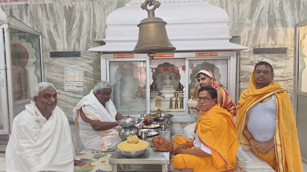 निर्वाण लाडू चढाया गया उन्होंने बताया कि इसी के साथ कस्बें में विराजमान आर्यिका सुरम्यमति माताजी स संघ के पावन चातुर्मास 2025 का विभिन्न धार्मिक कार्यक्रम आयोजित करवाने के बाद भव्य निष्ठापन हुआ।