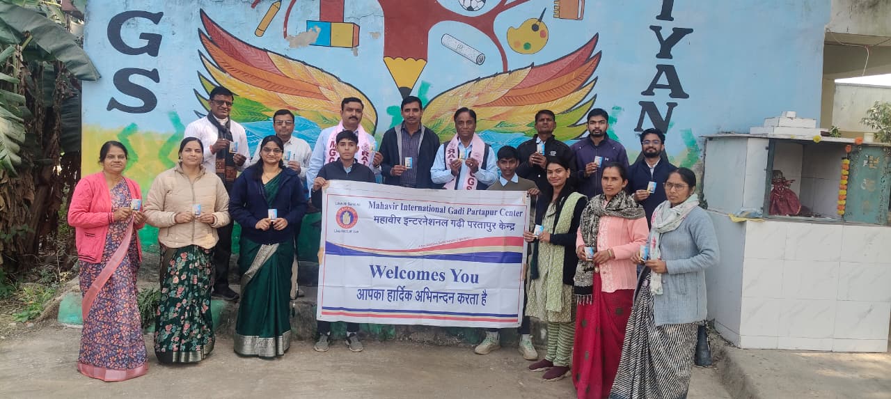 महावीर इंटरनेशनल गढ़ी परतापुर द्वारा महात्मा गांधी राउ मा विद्यालय रेयाना में गुरुजनों को जीवन रक्षक टैबलेट कीट वितरित