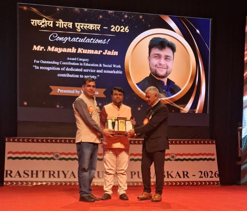शिक्षक मयंक जैन को मिला ‘राष्ट्रीय गौरव पुरस्कार 2026