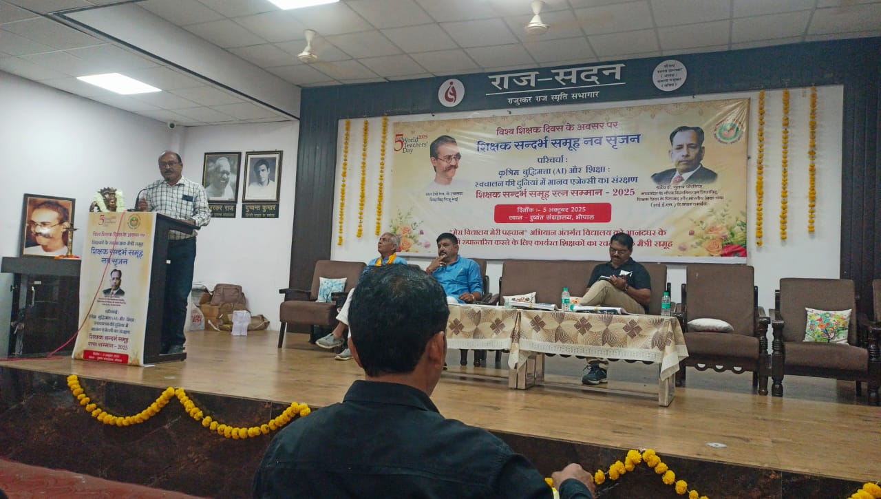 इंदौर ।विश्व शिक्षक दिवस के अवसर पर भोपाल स्थित दुष्यंत संग्रहालय में शिक्षक संदर्भ समूह नव सृजन द्वारा आयोजित कार्यक्रम में “कृत्रिम बुद्धिमत्ता (एआई) और शिक्षा:स्वचालन की दुनिया में मानव एजेंसी का संरक्षण” विषय पर परिचर्चा का आयोजन किया गया।