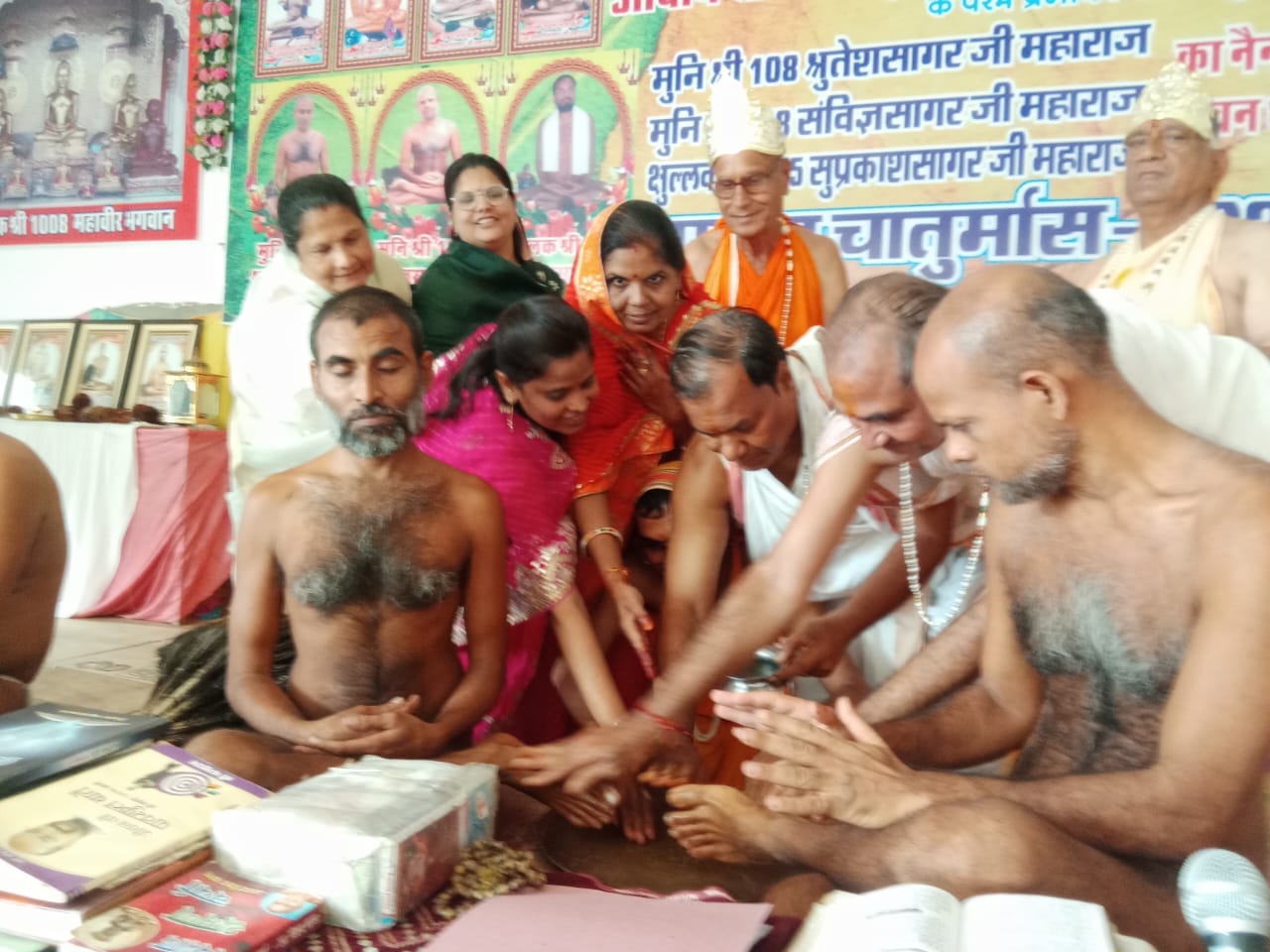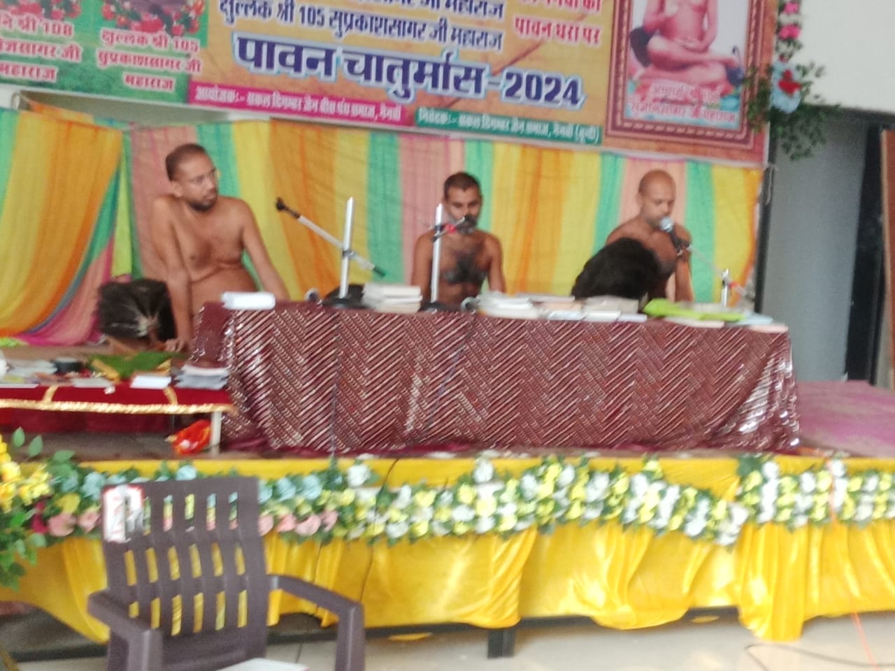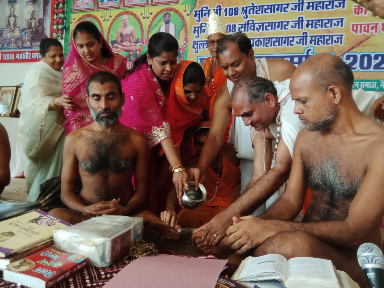 जैन मुनि श्रुतेशसागर जी महाराज मुनिश्री सविज्ञसागर जी छुल्लक सुप्रकाश सागर महाराज के पावन सानिध्य में प्रातः 7:00 बजे शांति वीर धर्म स्थल बिसपंथ पर अपार भक्तों द्वारा श्री जी का अभिषेक पूजन शांति धारा श्रेयांशनाथ भगवान का अपार भक्तों ने निर्माण लड्डू चढ़ाया