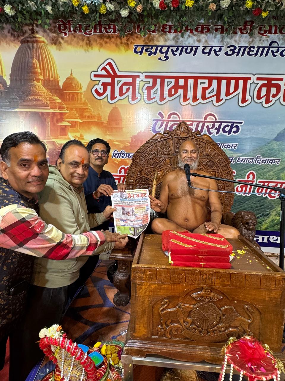 झालरापाटन (जिला झालावाड़) श्री 1008 शांति नाथ दिगंबर जैन अतिशय क्षेत्र में विराजमान परम पूज्य अनुष्ठान विशेषज्ञ धर्म चक्रवती मुनि श्री जयकीर्ति जी गुरुदेव के करकमलों में 130 वर्ष से निरंतर प्रकाशित सर्वाधिक लोकप्रिय जैन गजट भेट किया गया।गुरुदेव ने “पार्श्वमणि” के कवरेज की प्रसन्नचित होकर खूब तारीफ की ।विदित हो कि राष्ट्रीय मीडिया प्रभारी पारस जैन “पार्श्वमणि” पत्रकार की गुरुदेव के कोटा मंगल प्रवास के समय अकलंक स्कूल परिसर में दिनांक 21 नवंबर से 30 नवंबर 2025 तक हुई श्रीराम कथा का जोरदार प्रचार प्रसार किया था। पारस जैन साथ परम मुनि भक्त महेश गंगवाल चांदमल गंगवाल जिनेंद्र पापड़ीवाल अनिल श्रीमाल, राजकुमार शास्त्री,मीना गंगवाल, मिंटो श्रीमाल का झालरापाटन समाज द्वारा तिलक लगाकर ,माल्यार्पण कर स्वागत किया गया।