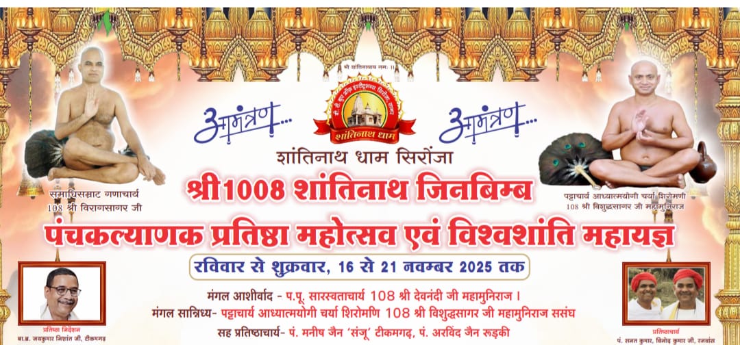 श्री शांतिनाथ धाम सिरोंजा सागर में होने जा रहे ऐतिहासिक जिनबिंब पंचकल्याणक महामहोत्सव