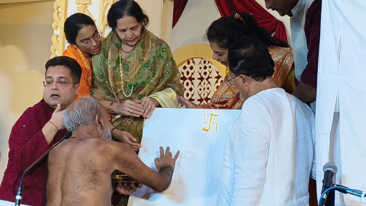 वरिष्ठ चित्रकार श्रीमति पुष्पा पांड़्या द्वारा आचार्य श्री विद्यासागरजी महाराज के जीवन पर आधारित ५० फुट की पैंटिंग “ विद्याधर की जीवन गाथा” इंदोर में प्रथम बार परम श्रद्देय प्रमाणसागरजी महाराज के समक्ष प्रदर्शित की गई तो पैंटिंग को खोलते ही पूरा श्र्धालुओं से ख़चाख़च भरा पंडाल तालियों से गूँज उठा