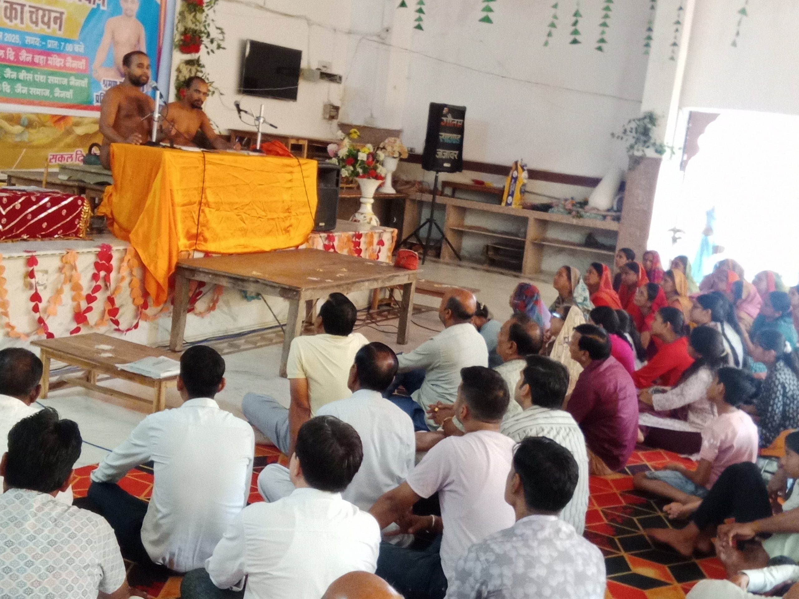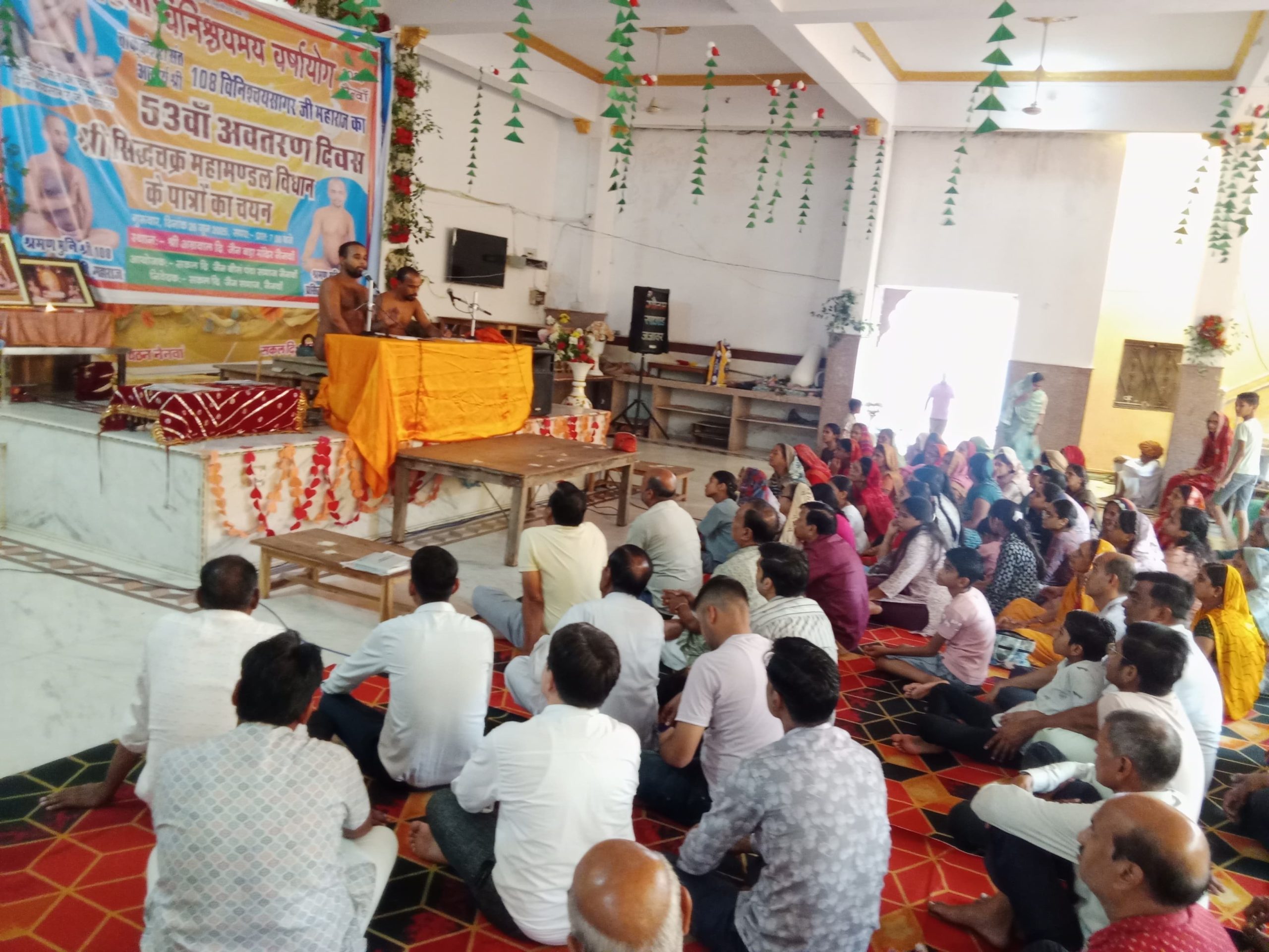 मुनि ने यह भी बताया कि अपने घरों पर प्रत्येक परिवार शांति चाहता है अपने घर पर एक स्थान पर देव का स्थान विराजमान होना चाहिए जिससे देवकी भक्ति हो सके उसकी जगह कु देव की भक्ति व सेवा करना एक नर्क का द्वार के बराबर मुनि ने बताया
