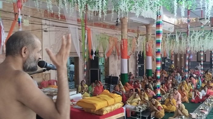 मुरैना (मनोज जैन नायक) संपूर्ण विश्व को सत्य, अहिंसा, शाकाहार, जीवदया, परोपकार और जियो और जीने दो का संदेश देने वाले युग पुरुष, संत शिरोमणि समाधिस्थ दिगम्बराचार्य विद्यासागरजी महाराज भले ही आज शारीरिक रूप से हमारे बीच मौजूद नहीं हैं लेकिन उनके द्वारा दिए गए संस्कार, उपदेश, शिक्षाएं हमारे हृदय पटल पर अंकित हैं। आज हम सभी ऐसे युग पुरुष को याद कर रहे हैं जिन्होंने जीतेजी कभी भी अपना अवतरण दिवस नहीं मनाया, न हीं किसी अन्य को मनाने की स्वीकृति प्रदान की । पूज्य गुरुदेव ने सदैव ही विदेशी वस्तुओं को त्यागने एवं स्वदेशी को अपनाने का संदेश दिया । आपने अपने जीवन काल में लाखों लोगों से मांसाहार का त्याग करवाकर शाकाहार से जोड़ा साथ ही सैकड़ों श्रावक श्राविकाओं को जैन दर्शन से जोड़कर जैनेश्वरी दीक्षा देकर संयम पथ की ओर अग्रसर किया । पूज्य गुरुदेव के उपकार को हम सभी न कभी भूल सकते हैं, न कभी उनके उपकार को चुका सकते हैं। आने वाले समय में युगों युगों तक गुरुदेव आचार्यश्री विद्यासागर जी महाराज के व्यक्तित्व एवं कृतित्व को याद किया जाता रहेगा । उक्त उद्गार शरद पूर्णिमा के अवसर पर आचार्य श्री विद्यासागर अवतरण दिवस पर मुनिश्री विलोकसागरजी महाराज ने बड़े जैन मंदिर में धर्म सभा को संबोधित करते हुए व्यक्त किए ।