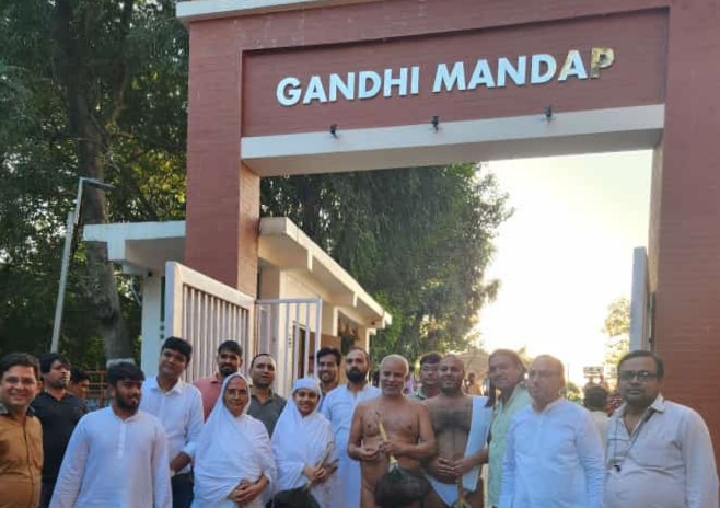 गुवाहाटी : भगवान महावीर धर्म स्थल में चातुमार्सिक प्रवास के दौरान ससंघ विराजित असम के राज्यकीय अतिथि आचार्य प्रमुख सागर महाराज शनिवार को सायःकाल ससंघ भ्रमण करते हुए उल्लूबाडी़ गांधी मंडप पहुंचे। वहां उपस्थित मंडप के सदस्यों ने आचार्य श्री ससंघ को मंडप का भ्रमण कराया।आचार्य श्री ने मंडप में स्थापित गांधी जी की कलाकृतियों की तहे-दिल से तारीफ कि एवं वहां उपस्थित सभी लोगों को अपना मंगल आशीष प्रदान कर राष्ट्रीय गान गाया।तत्पश्चात आचार्य श्री ससंघ ने मंडप से प्रस्थान कर कमल कुमार गंगवाल के निवास द्वारकाश एनक्लेव में रात्रि विश्राम किया। प्रचार प्रसार संयोजक ओम प्रकाश सेठी ने बताया कि रविवार को प्रातः 6:00 ससंघ द्वारका एनक्लेव से प्रस्थान कर रिहाबाड़ी स्थित श्री चंद्र प्रभु दिगंबर जैन चैत्यालय पहुचें जहां ससंघ द्वारा विभिन्न धार्मिक कार्यक्रमों काश आयोजन किया गया। प्रचार प्रसार सह संयोजक सुनील कुमार सेठी ने बताया कि दोपहर 2:00 आचार्य श्री ससंघ ने रिहाबाड़ी से प्रस्थान कर फैंसी बाजार स्थित भगवान महावीर धर्म स्थल पहुचें।