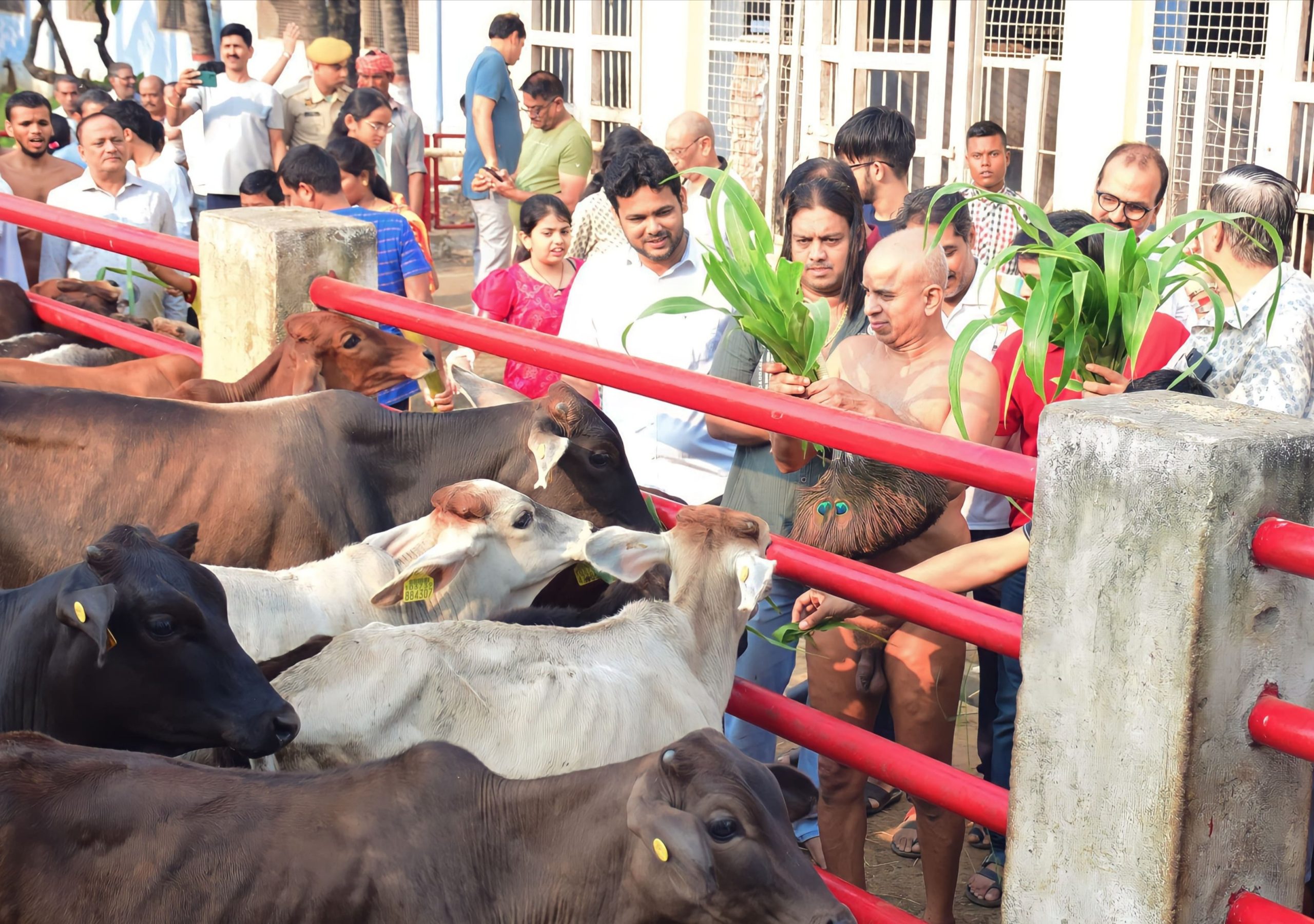 गुवाहाटी : भगवान महावीर धर्म स्थल में चातुमार्सिक प्रवास के दौरान ससंघ विराजित असम के राज्यकीय अतिथि आचार्य प्रमुख सागर महाराज सोमवार को प्रातःकाल ससंघ भ्रमण करते हुए आठगांव स्थित गुवाहाटी गौशाला पहुंचे। वहां उपस्थित गौशाला के सदस्यों ने आचार्य श्री को गौशाला का भ्रमण कराकर आशीर्वाद प्राप्त किया।आचार्य श्री ने तहे- दिल से गुवाहाटी गौशाला की तारीफ कि एवं वहां उपस्थित सभी लोगों को अपना मंगल आशीष प्रदान किया एवं सैकड़ो गायों को अपने हाथों से चारा-गुड खिलाया।इस अवसर पर समाज के गणमान्य लोगों के अलावा गौशाला एवं कई स्थानीय लोग उपस्थित थे। यह जानकारी प्रचार प्रसार संयोजक ओम प्रकाश सेठी एवं सहसंयोजक सुनील कुमार सेठी द्वारा दी गई है।