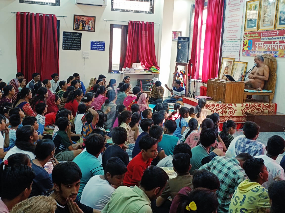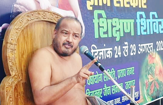 जयपुर। राजधानी के प्रताप नगर स्थित सेक्टर 8 के शांतिनाथ दिगंबर जैन मंदिर में चल रहे आचार्य सौरभ सागर महाराज के सानिध्य में समाज के युवाओं (लड़के/लड़की) जिनकी उम्र 40 साल तक है को लेकर 21 वां जैन आध्यात्मिक ज्ञान संस्कार शिक्षण शिविर का आयोजन 24 अगस्त से लगातार चल रहा है। शिविर के चौथे दिन समाज के हर वर्ग के लड़के, लड़कियां, बालक, बालिका भाग लेकर धर्म की शिक्षा ले रहे है और जीवन में धर्म के महत्व की शिक्षा ले रहे है। रविवार को चौथे दिन 300 से अधिक युवाओं ने शिविर में भाग लिया।
