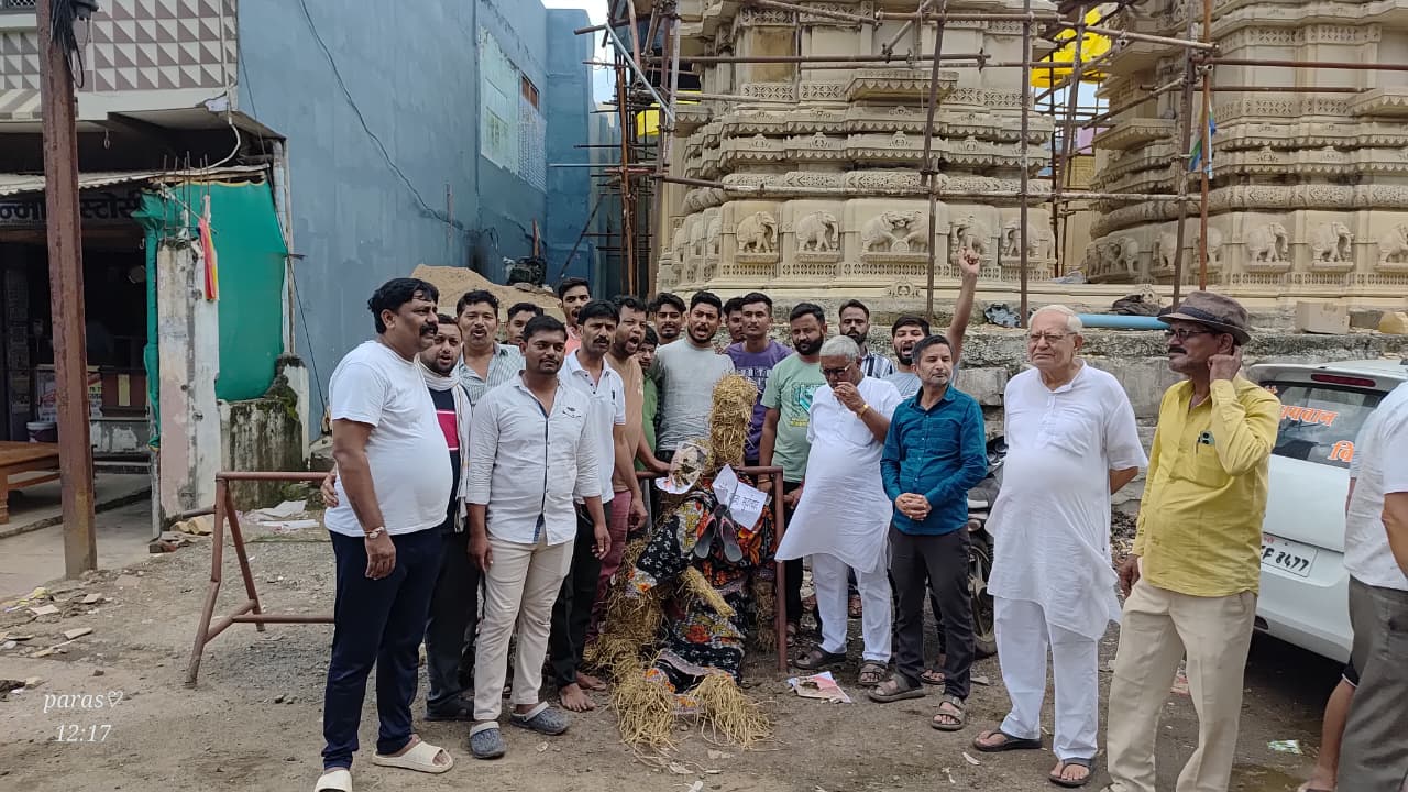 हाल ही में संतोष जैन पटना द्वारा अशोकनगर में आचार्य श्री को लेकर की गई टिप्पणी के बाद मामला फिर गर्मा गया है। जिसको लेकर समाज में काफी रोष है। यहां तक कि स्वयं विनम्र सागर महाराज ने भी इस मामले में खुलकर अपनी बात कही है। उधर समाज में संतोष जैन को लेकर काफी असंतोष व्याप्त है। लोगों ने उनके पुतले का सम्मान जूतों की माला पहनाकर पुतला फूंक कर किया गया। उनके खिलाफ सोशल मीडिया पर निंदा प्रस्ताव पारित कर सार्वजनिक रूप से माफी मांगने की मांग की है। गौरतलब हो कि शनिवार को अशोकनगर में आयोजित जिज्ञासा समाधान कार्यक्रम के दौरान समाज के संतोष जैन पटना द्वारा आचार्य श्री विद्यासागर महाराज को लेकर की गई टिप्पणी पर अब तीव्र विरोध सामने आने लगा है। यह टिप्पणी जगत पूज्य निर्यापक सुधासागर महाराज की उपस्थिति में की गई, जिसे समाजजनों ने अत्यंत आपत्तिजनक माना है। इस घटना के विरोध में महाराजपुर में जैन समाज के लोगों ने प्रदर्शन करते हुए पुतला दहन कर आक्रोशपूर्ण जुलूस निकाला और निंदा प्रस्ताव पारित कर अशोकनगर जैन समाज के पदाधिकारीयों के नाम ज्ञापन देकर संतोष जैन पटना को सार्वजनिक रूप से माफी मांगने एवं सामाजिक स्तर पर कड़ी कार्रवाई करने की मांग की गई। समाजजनों ने इस प्रकार से आचार्य श्री को लेकर अनावश्यक बातों की निंदा की। बागीदौरा में चातुर्मास कर रहे मुनिश्री विनम्र सागर महाराज ने भी विषय पर अपनी प्रतिक्रिया दी और संतोष जैन की टिप्पणी को अनुचित बताया। वहीं मुनिश्री निष्कंप सागर महाराज ने भी आचार्य श्री के प्रति की टिप्पणी को कठोर आलोचना की और कहा कि समाज को संतों के प्रति श्रद्धा और मर्यादा बनाए रखनी चाहिए। समग्र रूप से यह प्रकरण जैन समाज में असंतोष का कारण बन गया है। ज्ञापन देने में अध्यक्ष उपाध्यक्ष राजेश सिंघई, सचिव , राजेश सोधिया, महेंद्र सोधिया,दिनेश सोधिया, नीलेश सोधिया,नीरज जैन अशोक हर्रया जवाहरलाल हर्रया, अंशुल हर्रया,अन्नू हर्रया, पंकज जैन, मयंक सोधिया, आशुतोष सोधिया,पंकज सिंघई सहित बड़ी संख्या में सकल दिगम्बर जैन समाजजन उपस्थित रहे।