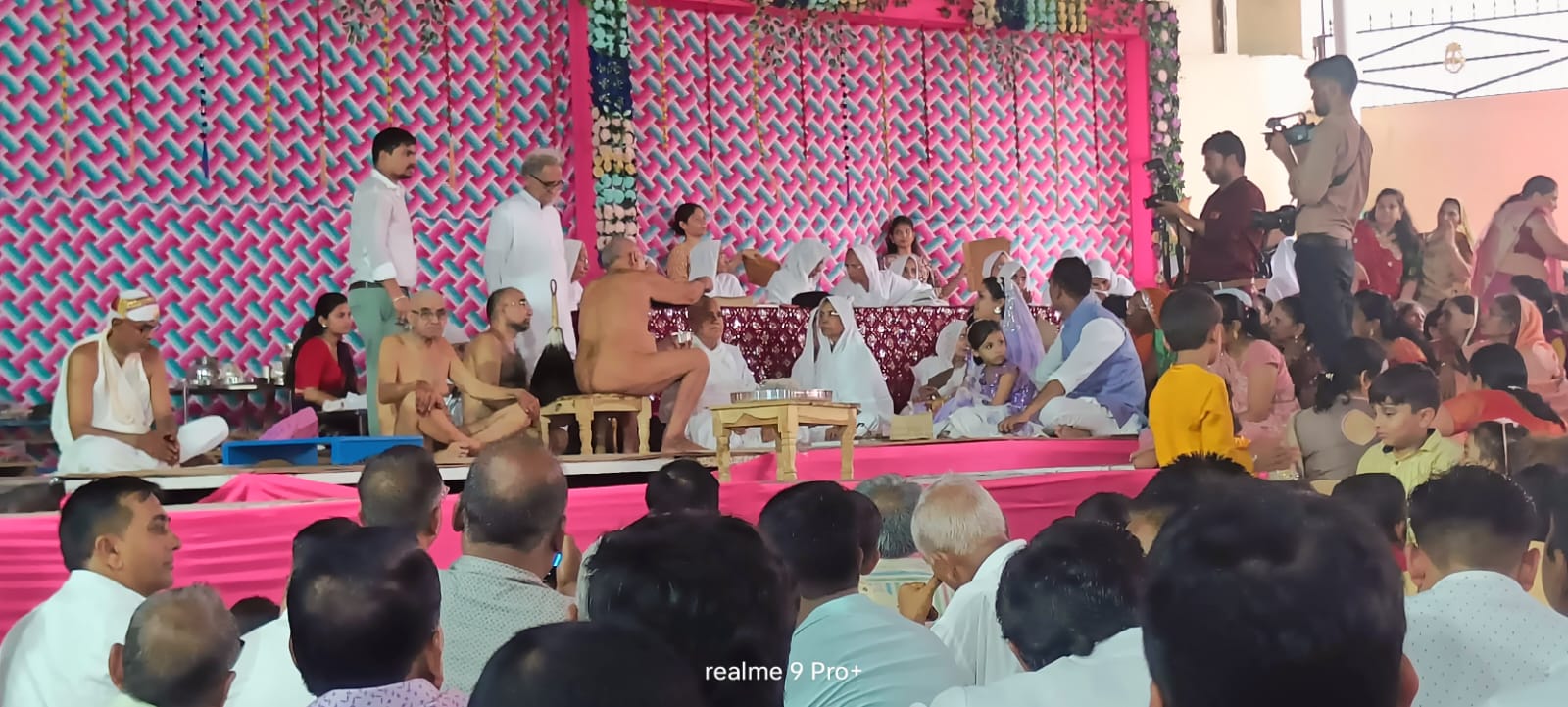 दिगंबर जैन दशा हूमड़ समाज एवं वर्षायोग समिति के संयुक्त तत्वाधान में आयोजित दीक्षा समारोह श्यामा वाटिका कार्यक्रम सभागार में भगवान और पूर्वाचार्यों का चित्र अनावरण दीप प्रज्वलन दीक्षार्थी परिवार द्वारा किया गया। जयंतीलाल कोठारी अध्यक्ष एवं ऋषभ पचोरी अध्यक्ष चातुर्मास समिति ने बताया कि प्रथमाचार्य चारित्र चक्रवती आचार्य श्री शांति सागर जी एवम पूर्वाचार्यो को अर्ध्य समर्पित विभिन्न नगरों से पधारी समाज द्वारा किया गया।सौभाग्यशाली परिवार की 5 महिलाओं द्वारा चोक पूरण की क्रिया की गई।दीक्षार्थीयो ने आचार्य श्री ने दीक्षा की याचना की तथा आचार्य श्री एवम समस्त साधुओ दीदी भैया श्रावक श्राविकाओं तथा समाज से क्षमा याचना की।वात्सल्य वारिधि आचार्य श्री वर्द्धमान सागर जी के पंचामृत से चरण प्रक्षालन का सौभाग्य तीनों दीक्षार्थी परिवार को मिला। इस बेला में आचार्य श्री के द्वारा दीक्षार्थी के पंच मुष्ठी केशलोच किये गए तथा दीक्षा संस्कार मस्तक तथा हाथों पर किये गए। इसके बाद आचार्य श्री ने नामकरण किया।7 प्रतिमा घारी 71 वर्षीय ब्रह्मचारी प्रदीप भैया दाहोद का दीक्षा उपरांत नूतन नाम 108 मुनि श्री प्रणित सागर किया गया। सात प्रतिमा धारी 69 वर्षीय शकुंतला देवी का नाम दीक्षा के बाद आर्यिका 105 श्री प्रेक्षा मति किया गया। 68 वर्षीय दिलीप अलासे का नूतन नाम क्षुल्लक श्री प्राप्त सागर जीकिया गया। पुण्यार्जक परिवार द्वारा पिच्छी कमंडल शास्त्र एवम कपड़े भेंट किये गए।कार्यक्रम का सुंदर एवम प्रभावशाली संचालन श्री पंडित कीर्ति पारसोला ने किया। आज दीक्षार्थी के केशलोच हो रहे थे, तब सभी वैराग्यमयी पलों से सभी द्रवित हो रहे थे। परिजनों के दोनों नेत्रों में एक नेत्र में खुशी के आंसू दूसरे नेत्र में दुख के आंसू भी थे। भक्तों के भजनों से वातावरण वैराग्य मय हो रहा आचार्य श्री मुनि श्री हितेंद्र सागर जी एवम् अन्य साधुओं ने दीक्षार्थी के केशलोचन किये।परिजनों एवम अन्य भक्त जिन्हें केशलोच झेलने का अवसर मिला। वह अपने को पुण्यशाली मान रहे थे ।