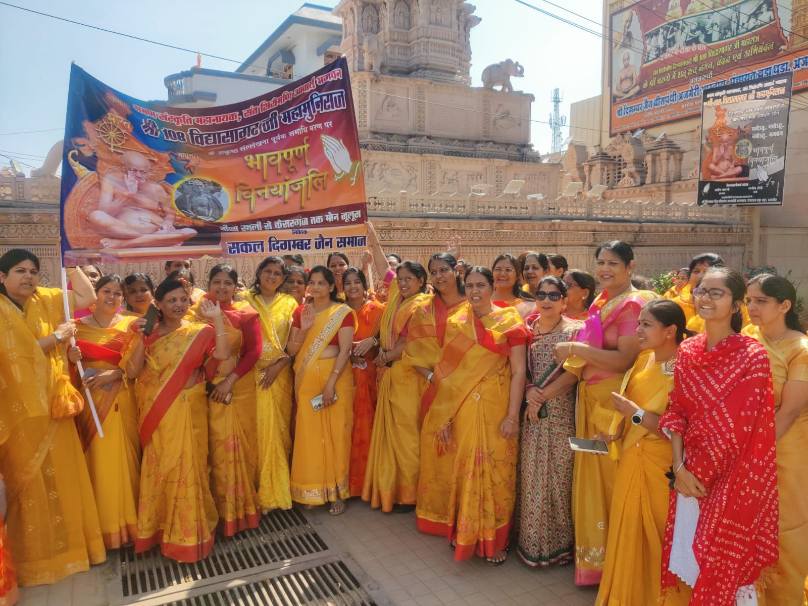 प्रवक्ता कमल गंगवाल व संजय कुमार जैन ने बताया कि सम्पूर्ण भारतवर्ष में जैन संतो के आहवान पर आज अजमेर में भी दोपहर 12 बजे कीर्ति स्तम्भ अजमेर जहां पर आचार्यश्री की दीक्षा स्थली है वहां आचार्यश्री के चित्र के समक्ष दीप प्रज्जवलन किया गया । तत्पष्चात वहां से हजारो की तादाद केसरियां वस्त्र में महिलायें व सफेद परिधान में पुरूष वर्ग ध्वजा लेकर आचार्यश्री के -मां का लाल कैसा हो विद्यासागर जैसा हो, संत षिरोमणि आचार्य गुरूवर विद्यासागरजी महाराज की जय हो, जैन धर्म की जय हो के नारो को गुंजायमान करते हुये जुलूस आगरा गेट चैराहा, गणेषजी मंदिर, नया बाजार चैपड, चूडी बाजार, गांधी बाजार, मदार गेट, क्लाक टावर, पान दरिबा, पडाव होते गोल चक्कर केसरगंज स्थित सकल जैन समाज की विनयांजलि सभा में पहुंच कर परिवर्तित हुआ ।
