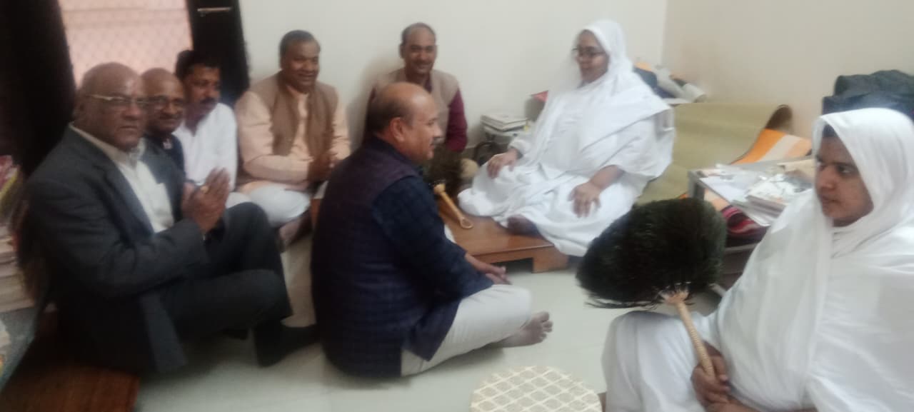 जिला कोटा 26 नवंबर गुरुवार को रिद्धि सिद्धि के जैन मंदिर में दिगंबर जैन बिस पथ समाज द्वारा सैष्टि बिस पंथ समाज के अध्यक्ष कमल कुमार मारवाड़ा शैलेंद्र मारवाड़ा विनोद मारवाड़ा जैन गजट संवाददाता महावीर सरावगी अशोक जैन अध्यापक विनोद कुमार जैन बरमुंडा श्रीफल भेंटकर निवेदन किया कार्यकारिणी को आशीष देते हुए आचार्य श्री ने कहा कि नैनवा धर्म नगरी है आप आए हैं कोशिश रहेगी आपकी बहुत ही अच्छी धर्म की प्रभावना है