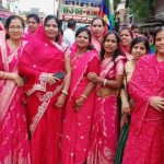 महिला मंडलों द्वारा जगह-जगह पर नृत्य की प्रस्तुतियां देते हुए