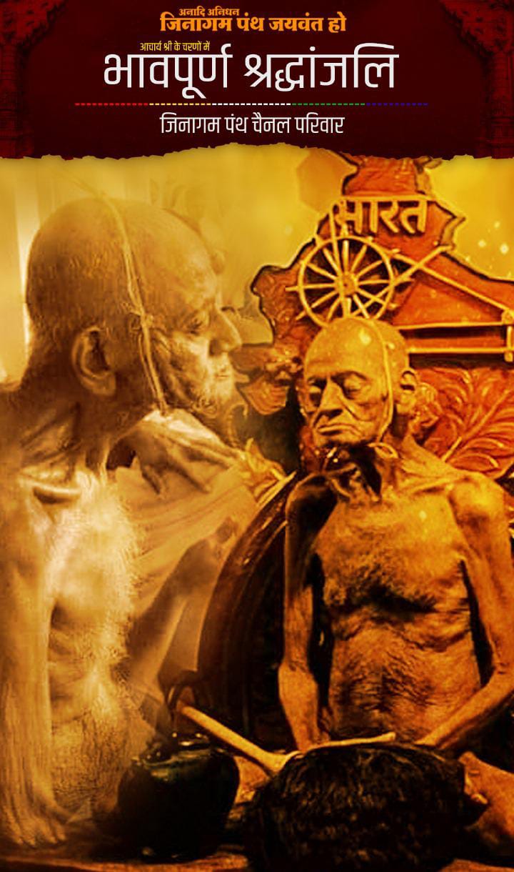 विगत दिनों से समाचार प्राप्त हो रहा था कि पूज्य आचार्य श्री विद्यासागर जी महाराज का स्वास्थ्य अनुकूल नहीं है, पुनः स्वास्थ्य लाभ का भी समाचार प्राप्त हुমা किन्तु आज रात्रिकाल में ही उनकी सल्लेखना पूर्वक समाधि हो गई। बन्धुओं। पूर्व में भी कमी आचार्य श्री विमलसागर सूर्यास्त हुआ, कभी आचार्य श्री सन्मति सागर सूर्यास्त हुआ था और आज आचार्य श्री विद्यासागर सूपांत हो गया है। जैन संत की जीवनभर की सम्पूर्ण साधना का प्रयोजन एक मात्र शुम एवं शुरू भावना पूर्वक समाधि मरण को ही बरठा करने का हुआ करता है। आज समाधि को प्राप्त आचार्य श्री विद्यासागर जी महाराज को श्रद्धांजलि अर्पित करते हुए हम महामंत्र का स्मरण करें।