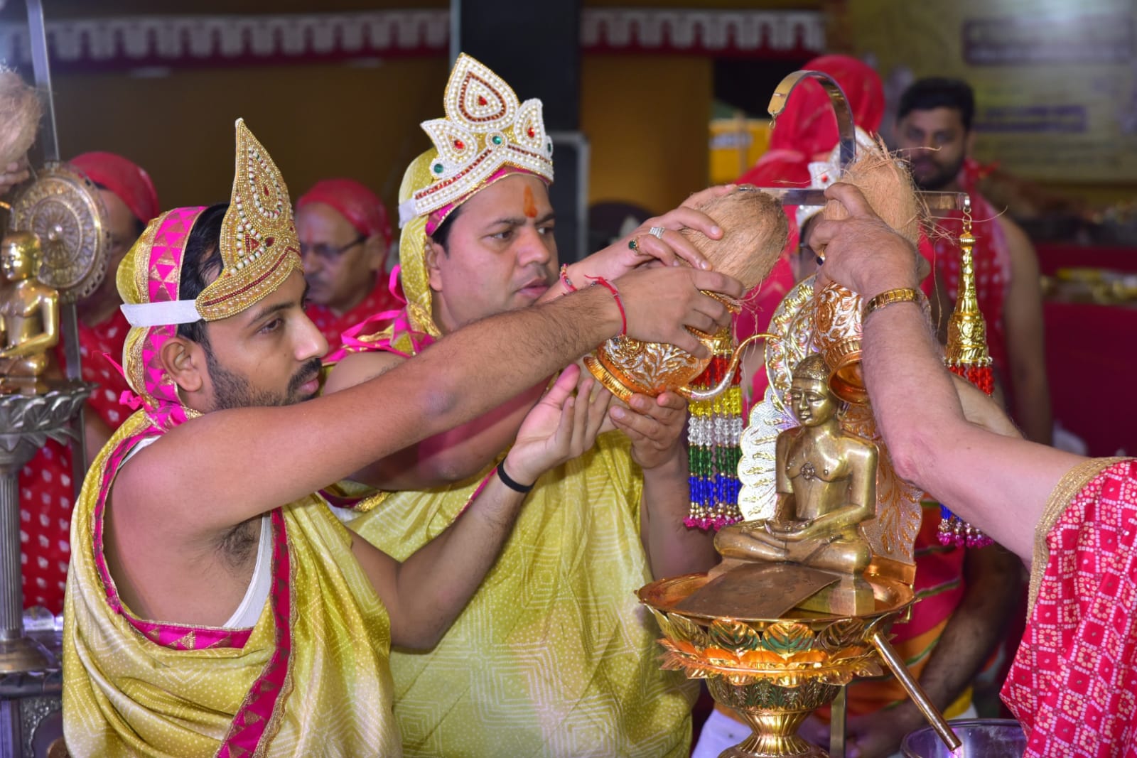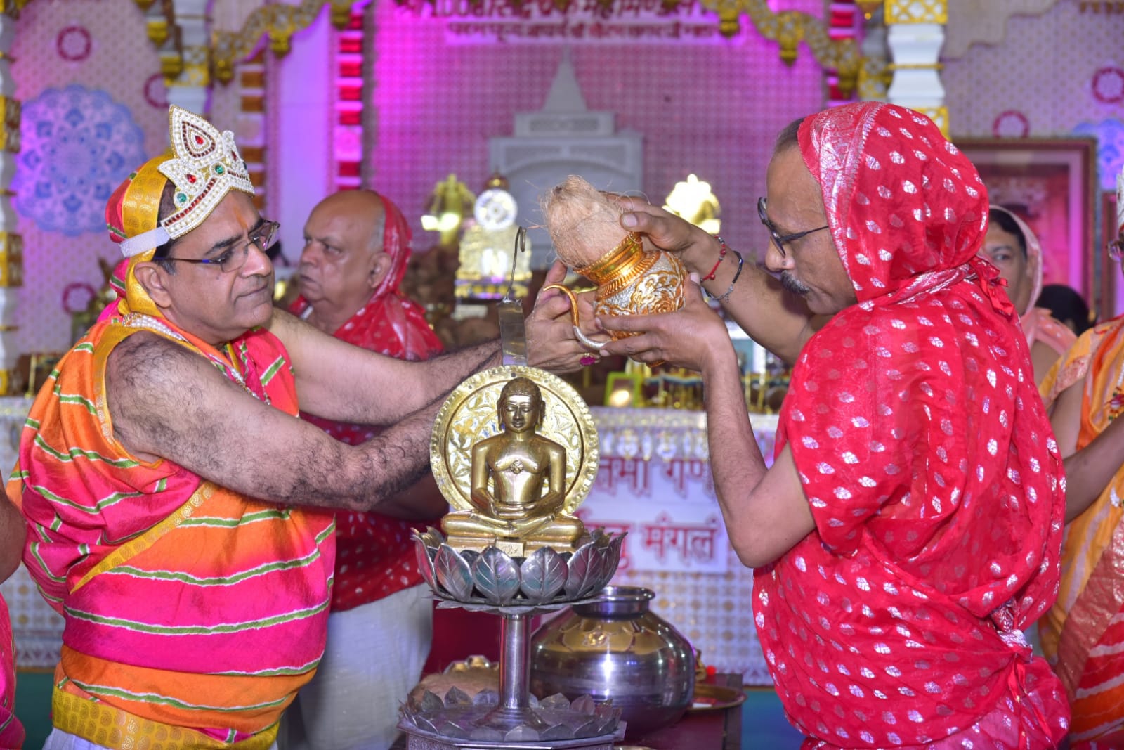 अध्यक्ष आलोक जैन ने बताया की सोमवार को श्रद्धालुओं ने भजन, भक्ति के साथ जिनेन्द्र प्रभु की आराधना की ओर कुल 1024 अष्ट द्रव्य पूजन में चढ़ा प्रभु से विश्व में शांति की मंगल भावना की। पूजन के दौरान प्रातः 8.30 बजे आचार्य श्री ने उपस्थित श्रद्धालुओं को संबोधित किया और आशीर्वचन दिए। मंगलवार को प्रातः 6.15 बजे महोत्सव के दसवें और अंतिम दिवस की शुरुवात श्रीजी के कलशाभिषेक के साथ होगी। इस दौरान शांतिधारा, नित्य नियम पूजन, विधान पूजन होगा, पूजन के दौरान आचार्य श्री के प्रवचन होगे, इसके बाद मंत्रोच्चारण के साथ महायज्ञ प्रारंभ होगा साथ ही महोत्सव के सहयोगियों, कार्यकर्ताओं, इंद्र – इंद्राणियों और अतिथियों का सम्मान किया जाएगा अंत ने श्रीजी को रथ पर विराजमान कर बैंड – बाजों और जयकारों के नगर शोभायात्रा निकाली जायेगी और श्रीजी मुख्य वेदी पर विराजमान किया जायेगा। सोमवार को हुई धर्म सभा में रमेश जैन तिजारिया, ताराचन्द पाटनी, हेमंत सोगानी, चिन्तामणि बज, अशोक जैन नेता, सुरेन्द्र मोदी, कमलबाबू जैन, मनोज झांझरी, पदम बिलाला, रमेश बोहरा सहित बडी संख्या में गणमान्य श्रेष्ठीजन उपस्थित थे।