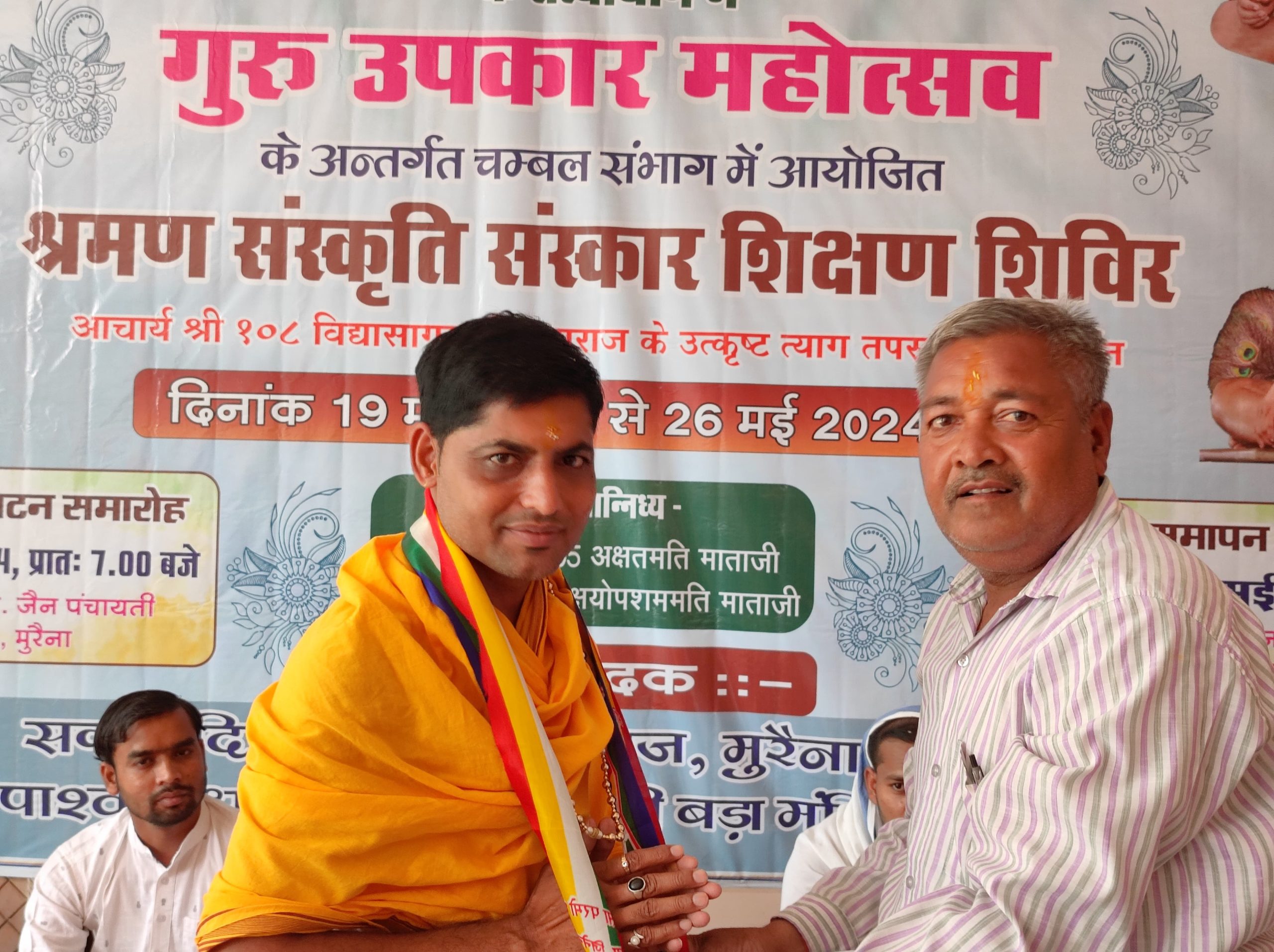 शिक्षण शिविरों के क्षेत्रीय प्रभारी नवनीत जैन शास्त्री मुरैना ने जानकारी देते हुए बताया कि गुरु उपकार महोत्सव के अंतर्गत पूज्य निर्यापक मुनि पुंगम सुधासागर जी महाराज के मंगल आशीर्वाद से श्री दिगम्बर जैन श्रमण संस्कृति संस्थान सांगानेर के तत्वाधान में 19 मई से 26 मई 2024 तक आठ दिवसीय श्रमण संस्कृति संस्कार शिक्षण शिविर का आयोजन पूज्य क्षुल्लिका अक्षतमति माताजी एवम क्षयोपसमति माताजी के पावन सान्निध्य में बड़े जैन मंदिर मुरेना में किया जा रहा है । शिविर संबंधी समस्त व्यवस्थाओं हेतु प्राचार्य वीरेंद्र जैन बावा को मुख्य संयोजक मनोनीत किया गया है ।
