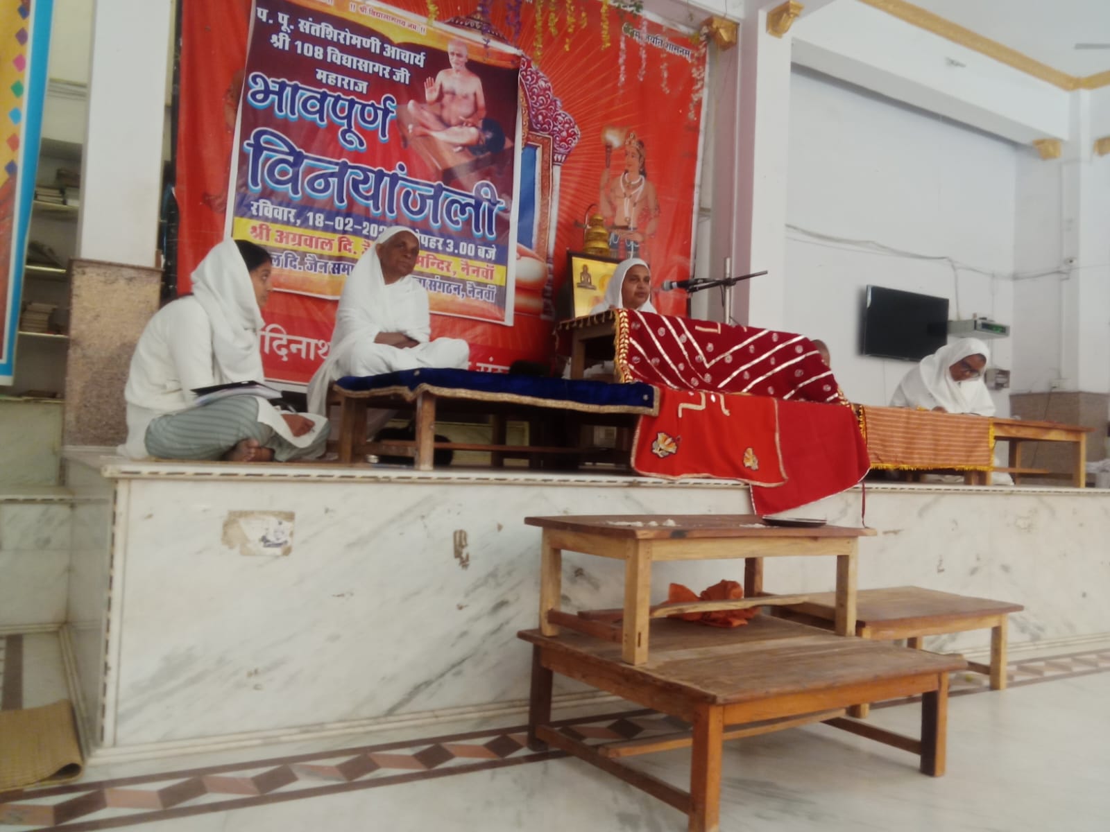 धर्म सभा से पूर्व मंगलाचरण की भव्य प्रस्तुति विनीता जैन द्वारा दी गई नैनवा 20 फरवरी मंगलवार 2024