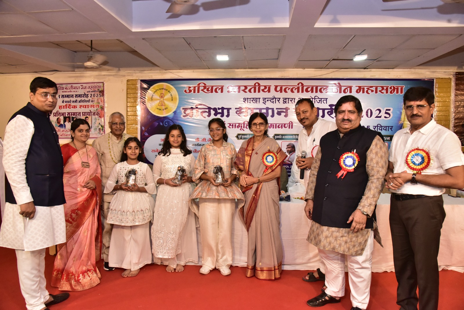 विगत दिवस संतोष सभाग्रह इंदौर में मुख्य अतिथि प्रो. रेनू जैन (पूर्व कुलपति देवी अहिल्या बाई विश्वविद्यालय) इंदौर के सान्निध्य में प्रतिभा सम्मान समारोह एवं सामूहिक क्षमावाणी कार्यक्रम भव्यतापूर्ण तरीके से मनाया गया । जिसमें अपोलो हॉस्पिटल विजयनगर एवं पल्लीवाल जैन समाज के संयुक्त प्रयासों से वर्ल्ड-हार्ट-डे पर भव्य मेडीकल कैंप का आयोजन किया गया । जिसमें 10 चिकित्सकों की टीम द्वारा 77 लोगों ने निःशुल्क चिकित्सा सेवाएं ली । तत्पश्चात दशलक्षण तपस्वी बहुमान समारोह में श्रीमती ऊषा जैन एवं बिटिया अरिहा जैन को तप साधना के लिए सम्मानित किया । युवा उद्यमी सम्मान द्वारा कपिल एवं अंबुज जैन को सम्मानित किया । कर्तव्यनिष्ठ समाजसेवी सम्मान स्व श्री अशोक जैन को मरणोपरांत उनके परिवारजनों को दिया, साथ ही दिलीप जैन को सम्मानित किया गया । समाज रत्न सम्मान श्री सुमत प्रकाश जैन को दिया, पं प्रवर दौलतराम मेमोरियल अवार्ड श्री शेखर चंद्र जैन जयपुर को दिया, अपोलो हॉस्पिटल विजयनगर के डाॅ विमल भगतजी एवं कमलेश पांडेजी हार्ट स्पेशलिस्ट द्वारा हार्ट अटैक से बचने के लिए लाइव वीएलएस डेमो का सुंदर कार्यक्रम रखा गया । जिसे समस्त समाजजन ने सराहा । उस निःशुल्क स्वास्थ्य सेवा के लिए समाज द्वारा अपोलो हॉस्पिटल के डाक्टरों का सम्मान किया गया । आठ नवीन परिवारों को पल्लीवाल सदस्यता से भी जोड़ा गया । तत्पश्चात पल्लीवाल समाज के सभी बच्चों को प्राइमरी से कालेज तक के सभी विद्यार्थियों को बैग एवं प्रशस्ति पत्र देकर सम्मानित किया गया । श्री विनोद जैन दिल्ली, डॉ अनुपम जैन, अध्यक्ष राजेन्द्र जैन, कार्यक्रम संयोजक पी सी जैन, संचालन श्री राजीव रतन एवं मंत्री इन्द्र कुमार जैन द्वारा किया गया, मुख्य अतिथि एवं विशेष अतिथि द्वारा कार्यक्रम की मुक्तकंठ से प्रशंसा की, आभार प्रदर्शन राजेन्द्र जैन ने किया तत्पश्चात समाज का सामुहिक भव्य सहभोज का कार्यक्रम रखा गया।