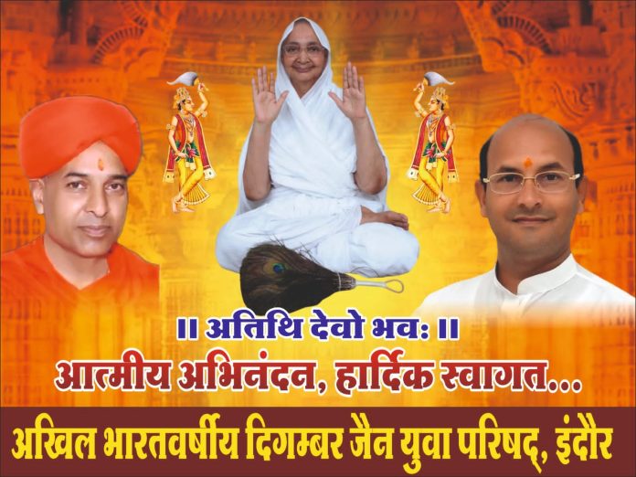 इंदौर नगर आगमन पर अखिल भारतीय दिगंबर जैन युवा परिषद् के तत्वावधान में आत्मीय अभिनन्दन* परम वंदनीय गणनि आर्यिका शिरोमणि श्री ज्ञानमती माताजी के परम उपकारी शिष्य बाल ब्रह्मचारी अखिल भारत वर्षीय दिगंबर जैन युवा परिषद के राष्ट्रीय अध्यक्ष श्री जीवन प्रकाश जी का विशेष अभिनन्दन समारोह आयोजित किया जा रहा है धर्म समाज प्रचारक राजेश जैन दद्दू एवं कार्यक्रम सुत्रधार अर्पित जैन वाणी ने बताया कि यह