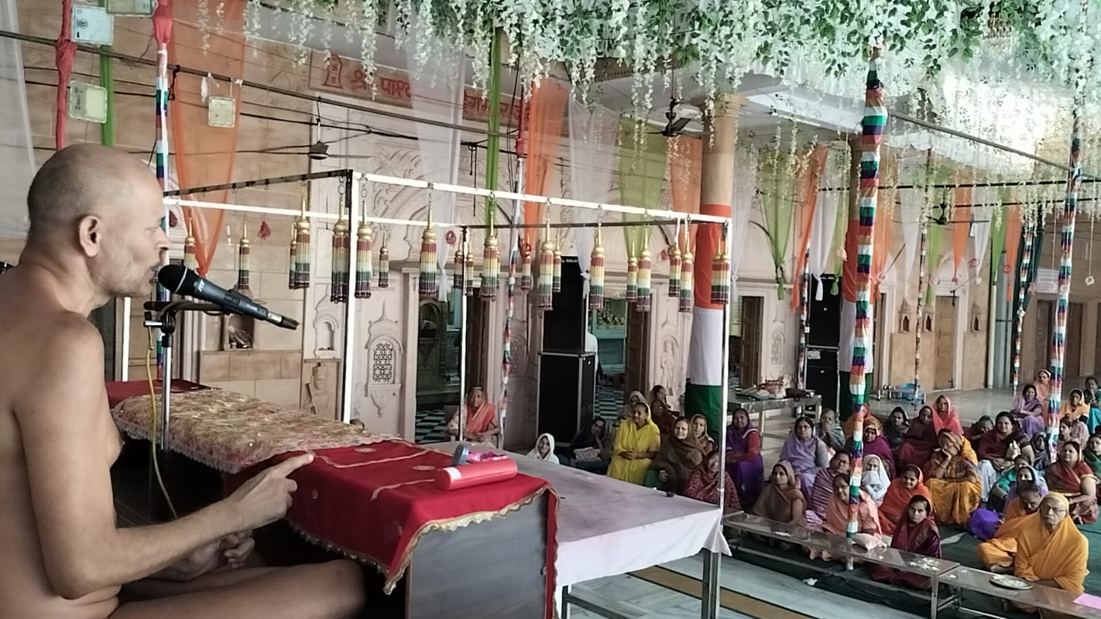 मुरैना (मनोज जैन नायक) आठ दिवसीय श्री सिद्धचक्र महामंडल विधान के शुभारंभ से पूर्व बड़े जैन मंदिर में निर्यापक श्रमण मुनिश्री विलोकसागरजी महाराज ने धर्मसभा को संबोधित करते हुए कहा कि जीवन में कैसी भी विषम परिस्थितियां निर्मित हों, हमें आदर्शो और सिद्धांतों को नहीं भूलना चाहिए । हमें अपने आदर्शो का, अपने सिद्धांतों को दृढ़ता से पालन करना चाहिए । सांसारिक जीवन में अनेकों प्रकार की विषम परिस्थितियां आती जाती रहती हैं। समय समय पर कभी दुख अथवा कभी सुख का आवागमन होता रहता है । हमने अपने ईष्ट के सदुपदेशों से, अपने गुरुओं से, साधु संतों से। अपने शास्त्र ग्रंथों आदि से जो भी आदर्श, सिद्धांत सीखे हैं या ग्रहण किए हैं उनके प्रति श्रद्धावान रहते हुए नियमपूर्वक उनका पालन करना चाहिए । यदि हमने अपने आदर्शो का, सिद्धांतों का, नियमों का दृढ़ता से पालन नहीं किया तो हमारा जीवन नरकमय होने से कोई रोक नहीं सकता । यदि कोई व्यक्ति अपने सिद्धांतों से भटक रहा है तो उसे समझाना चाहिए कि ऐसा करना गलत है ।