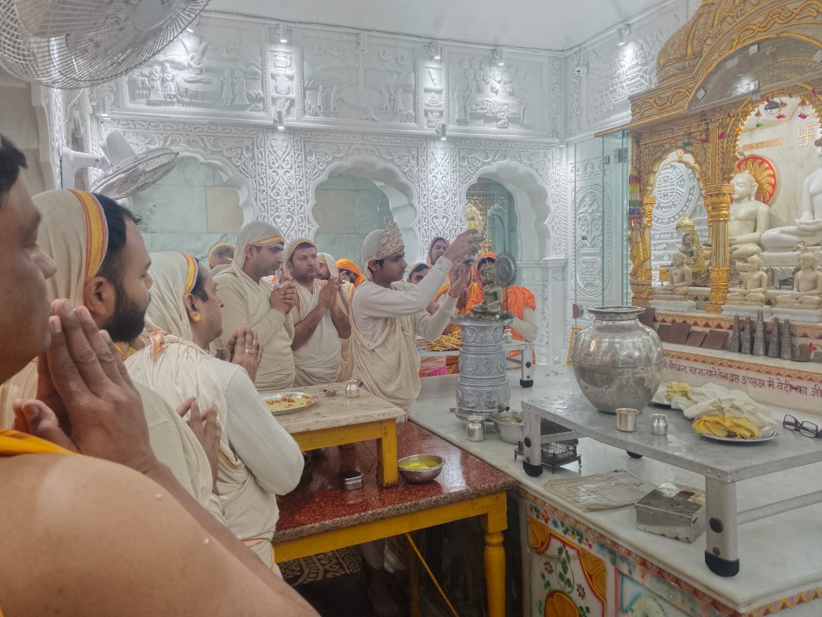 मन्दिर समिति के महामंत्री संजय जैन बड़जात्या के अनुसार इस अवसर पर प्रातः सामूहिक जिनेंद्र अभिषेक व विश्व शांति की कामना हेतु वृहद शांति धारा भागचंद जैन रिंकेश जैन दीपा जैन बड़जात्या परिवार द्वारा सौधर्म इंद्र बनकर की गई तो वही भक्तामर विधान का भी भक्ति भाव के साथ अन्य इंद्र इंद्राणियो ने मिलकर आयोजन किया। इस अवसर पर कहा कि जब से तलघर से भगवान की प्राचीन प्रतिमा प्रकट हुई है तभी से अनेको चमत्कार लोगो के जीवन मे घठित हो रहे हैं। ज्ञात रहे 32 वर्ष पूर्व मकर संक्रांति के पर्व पर मन्दिर में ही एक तलघर प्राप्त हुआ जिसमें से चौदह सौ वर्ष प्राचीन जैन धर्म के प्रथम तीर्थंकर आदिनाथ भगवान की प्रतिमा प्राप्त हुई थी तभी से प्रतिवर्ष वार्षिक प्रकट तिथि पर धार्मिक आयोजन किये जाते हैं। इस अवसर पर गजेंद्र जैन जयपुर,अजय जैन, नवीन जैन दिल्ली,सतेन्द्र जैन,उत्तम जैन,प्रदीप बड़जात्या,अभिषेक जैन,दौलत बड़जात्या, अनिल अगोनिया,संजय सर्राफ,दीपक सर्राफ सहित जैन समाज के महिला व पुरुष उपस्थित रहे। सांध्यकालीन बेला में 48 दीपको से भक्तामर महाअर्चना भी की गई।