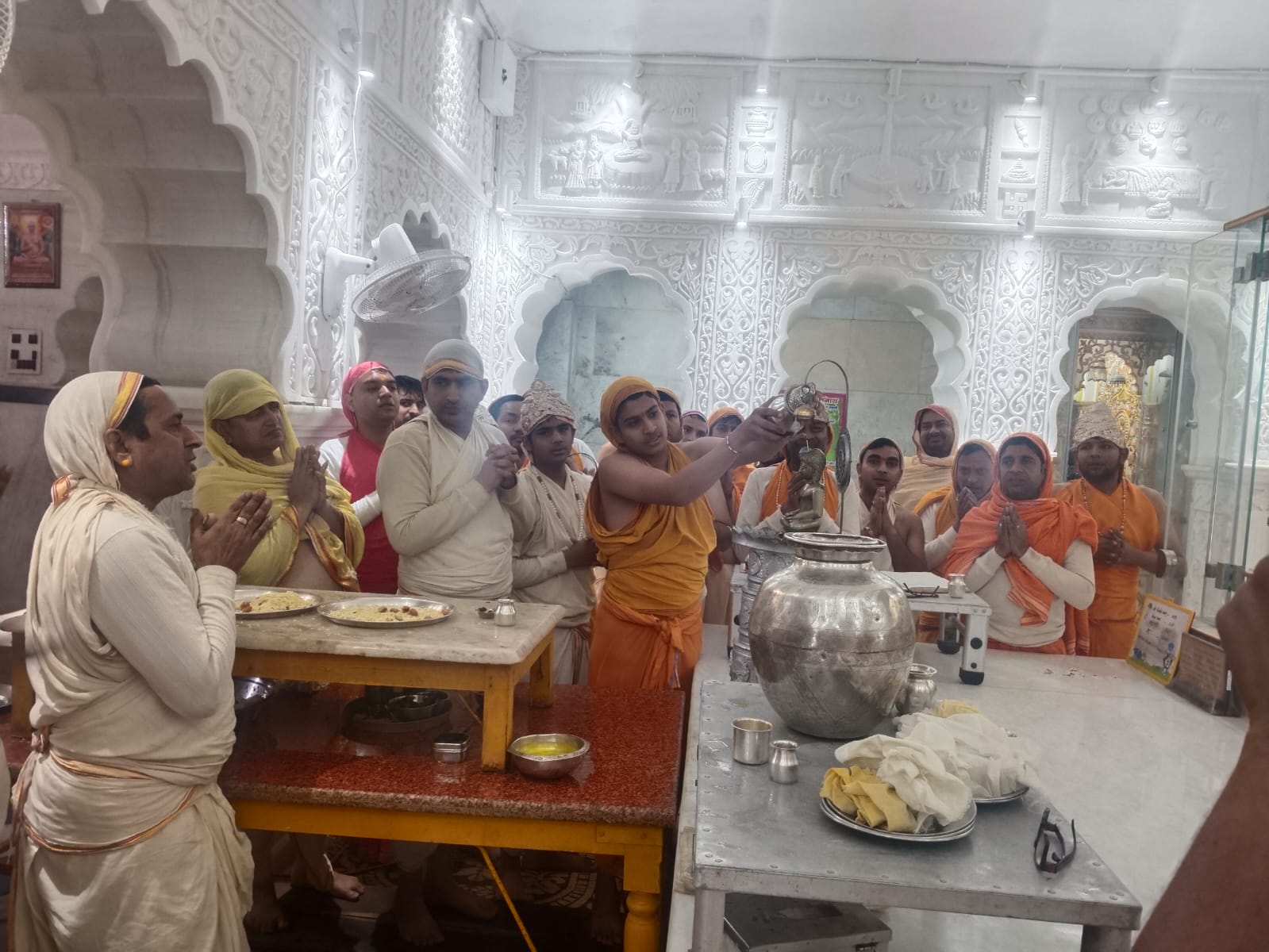कामां. कस्बे के शांतिनाथ दिगंबर जैन दीवान मंदिर में प्रबंध कमेटी के तत्वाधान एवं सकल जैन समाज के द्वारा आदिनाथ भगवान तलघर वाले बाबा की 33 वीं प्रकट तिथि के उपलक्ष्य में भक्तामर विधान व महाअर्चना का दौलत एंड पार्टी के संगीत के साथ भक्ति पूर्वक आयोजन किया गया।