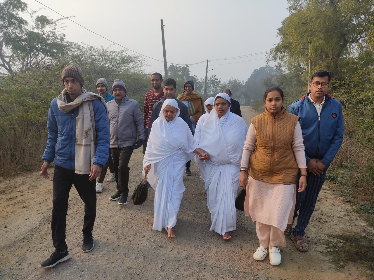 नैनवा जिला बूंदी 14 जनवरी बुधवार को प्रातः 7:30 पर आज का 105 सत्यवती माताजी 105 हेम श्री माताजी दिहाली स्कूल से रात्रि विश्राम कर अपार धर्म प्रभावना गाजे-बाजे के साथ दिगंबर जैन समाज द्वारा भव्य अगवानी कर मंदिर में प्रवेश कराया