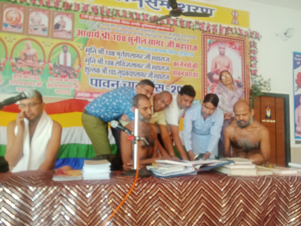 नैनवा 28 अक्टूबर सोमवार भगवान महावीर जिनालय पर जैन मुनि श्रुतेशसागर जी मुनि सविज्ञसागर जी क्षुल्लक सुप्रकाश जी महाराज वर्षा योग समिति द्वारा पाद पक्षालन चित्र अनावरण और दीप प्रज्वलित किया