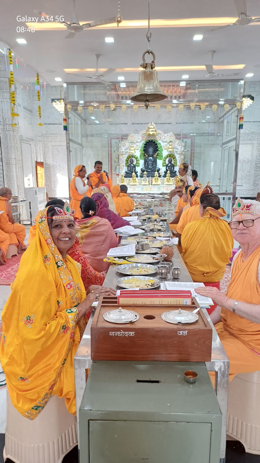 श्री अखिल भारतीय जैन युवा फेडरेशन शाखा अजमेर के तत्वाधान में मासिक पूजन की श्रंखला के तहत श्री दिगंबर जैन आदिनाथ जिनालय सोनी नगर में आज सामूहिक जिनेंद्र अभिषेक एवं पूजन का विशेष कार्यक्रम आयोजित किया गया। सर्वप्रथम स्थानीय सोनी नगर दिगम्बर जैन समाज के सहयोग से सभी प्रतिमाओं का अभिषेक किया गया उसके बाद शांति धारा की गई जिसमें सुरेश गदिया परिवार एवं प्रीतम सेठी परिवार का विशेष सहयोग रहा। उसके बाद पंडित धन्य कुमार के निर्देशन में देव शास्त्र गुरु पूजन, आदिनाथ पूजन पारसनाथ पूजन विश्व मे शांति अमन चैन हेतु शांति पाठ आदि पूजन के पश्चात प्रश्न मंच आयोजित किया गया जिसमें विजेताओं को पारितोषिक पहाड़िया परिवार एवं शाह परिवार द्वारा प्रदान किए गए। पूजन कार्यक्रम में संजय सोनी, सुरेश गदिया विजय पांड्या ,संजय दोषी किशोर कासलीवाल, प्रीतम सेठी ,संजय लुहाडिया, अजय बाकलीवाल, राकेश गदिया, अजीत कुमार जैन, पवन गोधा , निर्मल गंगवाल, पारस दोषी दीपक दोसी संजय जैन सुनील जैन आदि सदस्य उपस्थित हुए। मंदिर समिति के अध्यक्ष राजकुमार जी गोधा ने सभी आगंतुक सदस्यों का भाव भीना स्वागत करते हुए मंदिर की विशेषताओं की जानकारी दी ,प्रथम तल पर नव निर्मित मंदिर के निर्माण कार्य व प्रतिष्ठा की जानकारी उपलब्ध करवाई और भविष्य मे ऐसे कार्यक्रमों मैं मंदिर समिति के द्वारा सभी प्रकार के सहयोग का आश्वासन दिया अंत में संजय सोनी, सुरेश गदिया व विजय पांड्या द्वारा पूजन कार्यक्रम में जिन-जिन व्यक्तियों ने सहयोग किया उन सभी का आभार व्यक्त किया गया। एवं भविष्य में इसी प्रकार के होने वाले कार्यक्रम में अपनी उपस्थिति दर्ज करने का आह्वान किया। सुरेश गदिया ने बताया कि इस तरह के कार्यक्रम का उद्देश्य समाज के युवा वर्ग में धर्म के प्रति उत्साह उत्पन्न करना होता है। कार्यक्रम के पश्चात सभी के लिए अल्पाहार की व्यवस्था भी की गई थी।