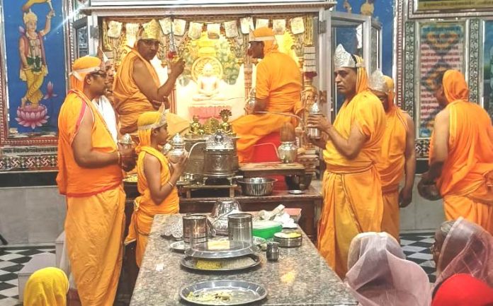 अजमेर 19 अपे्रल, 2026 श्री आदिनाथ दिगम्बर जैन मन्दिर सोनीनगर अजमेर में आज प्रातः अक्षय तृतीया महोत्सव मनाया गया इस अवसर पर प्रातः 7.00 बजे 108 स्वर्णकलषो मूलनायक आदिनाथ भगवान के कलषाभिषेक कमल बाकलीवाल, अषोक अजमेरा परिवार द्वारा तत्पष्चात वृहदषान्तिधारा डाॅ. राजकुमार गोधा व मंजू पहाडिया के मुखारबिन्द से सभी पुण्यार्जक परिवारों द्वारा की गई । तथा श्रीमति निर्मला पाटनी परिवार द्वारा 48 दीपको से भक्तामर पाठ कर दीप प्रज्जवलन किया गया ।