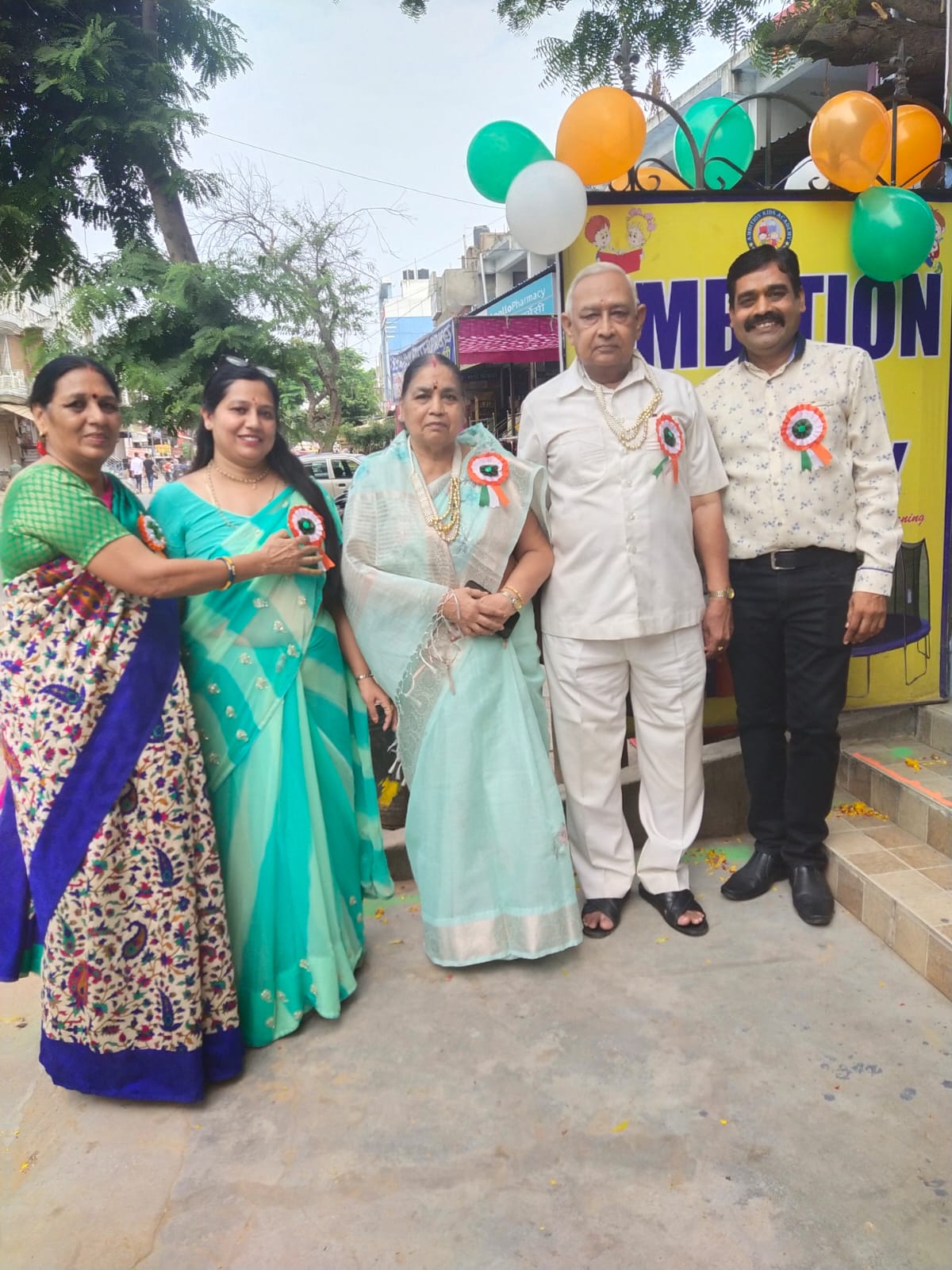 इससे पूर्व एम्बीशन किड्स में ध्वजारोहण – संस्था के चेयरमेन – अर्तराष्ट्रीय ख्याति प्राप्त वरिष्ठ होम्योपैथ डॉ. एम एल जैन ” मणि ” एवं डॉ. शान्ति जैन ” मणि ” के कर कमलों द्वारा किया गया ।