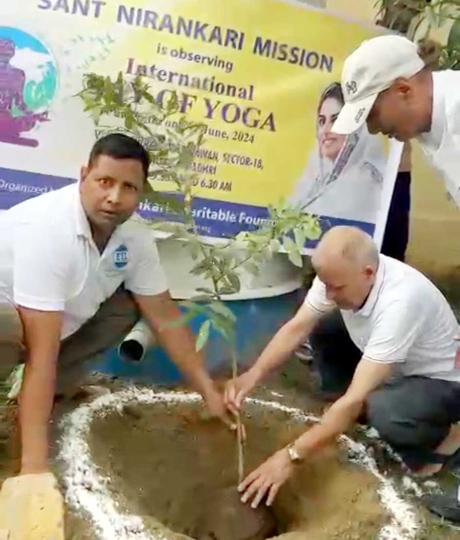 योगाभ्यास करते साधक व पौधा रोपण करते निरंकारी मिशन के पदाधिकारी……………(डा. आर. के. जैन)