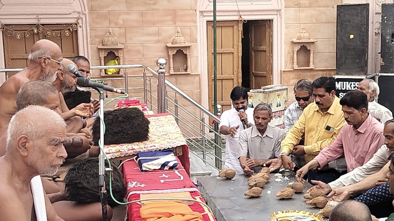 धर्म सभा का शुभारंभ मंगलाचरण के साथ हुआ । सभा के प्रारंभ में साधर्मी बंधुओं ने पूज्य आचार्यश्री निर्भयसागरजी महाराज का पाद प्रक्षालन किया ।