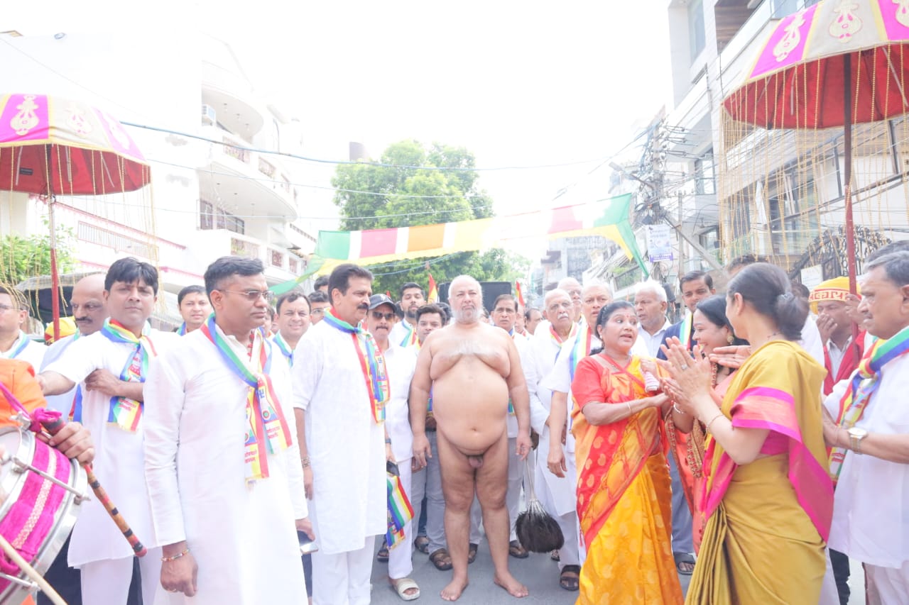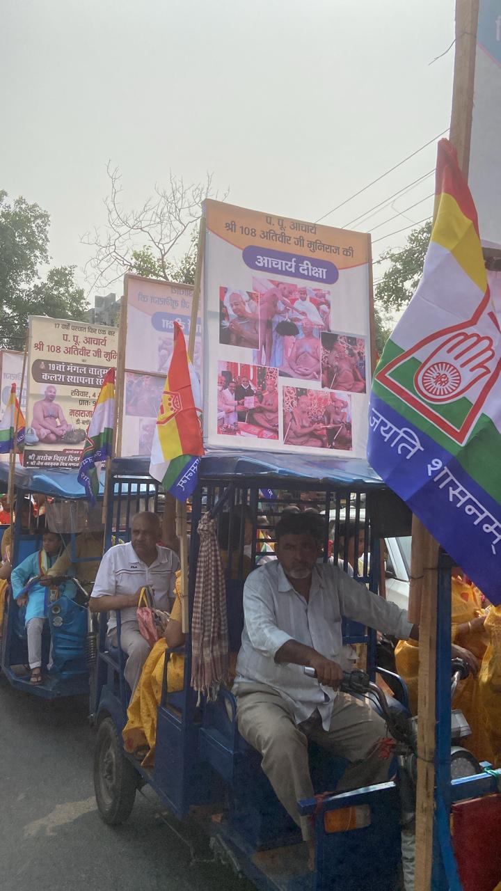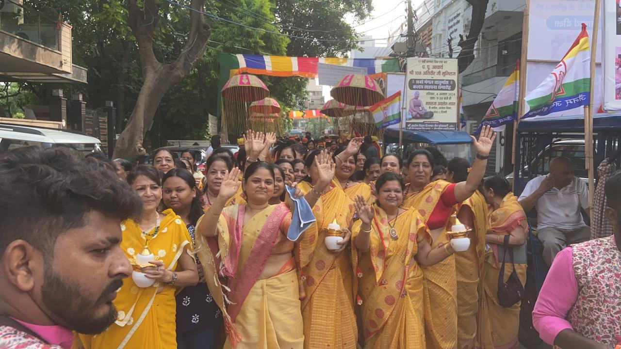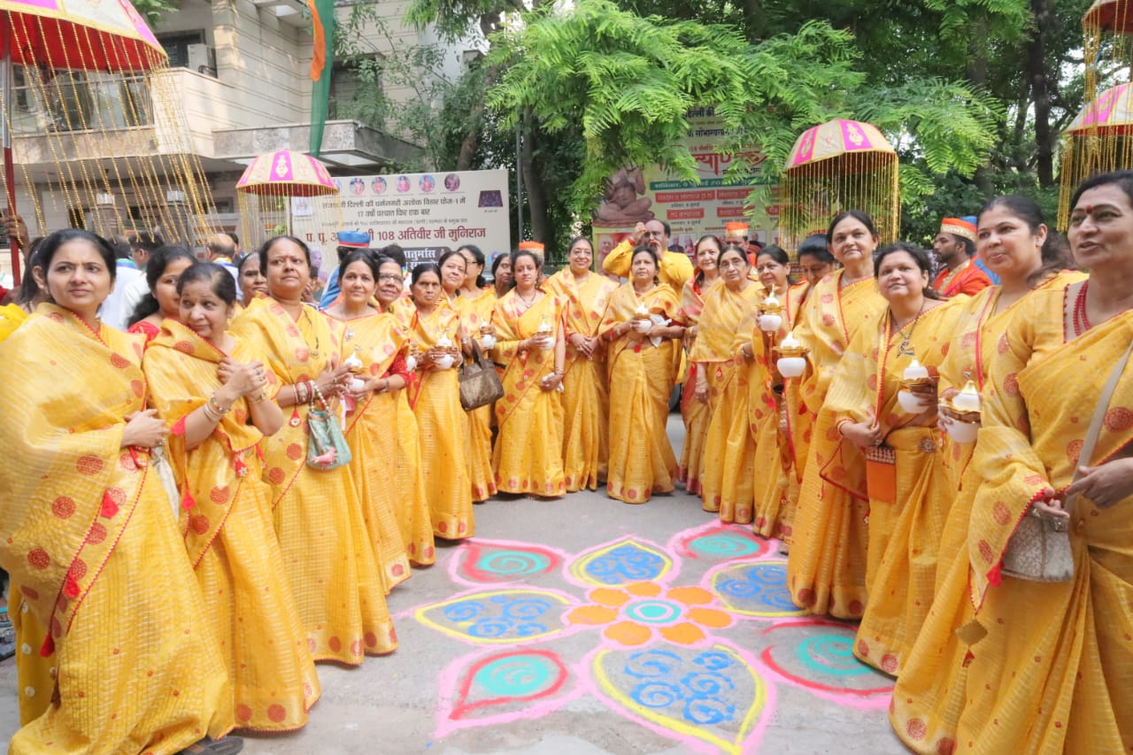 आचार्य श्री का विशाल शोभायात्रा के साथ श्री पार्श्वनाथ दिगम्बर जैन मन्दिर, अशोक विहार फेज़-2 से मंगल विहार प्रारंभ हुआ तो गुरुभक्तों ने जयकारों से वातावरण गुंजायमान कर दिया। शोभायात्रा में बैंड-बाजे, नफीरी-ताशा, नासिक ढ़ोल , भजन मंडली, जैन ध्वज, महिला, पुरुष आदि अपार जनसमूह साथ-साथ चल रहे थे। शोभायात्रा का मुख्य आकर्षण का केंद्र आचार्य श्री के जीवन पर आधारित “नीरज से अतिवीर” की तर्ज पर बनी पांच झांकियां रही।