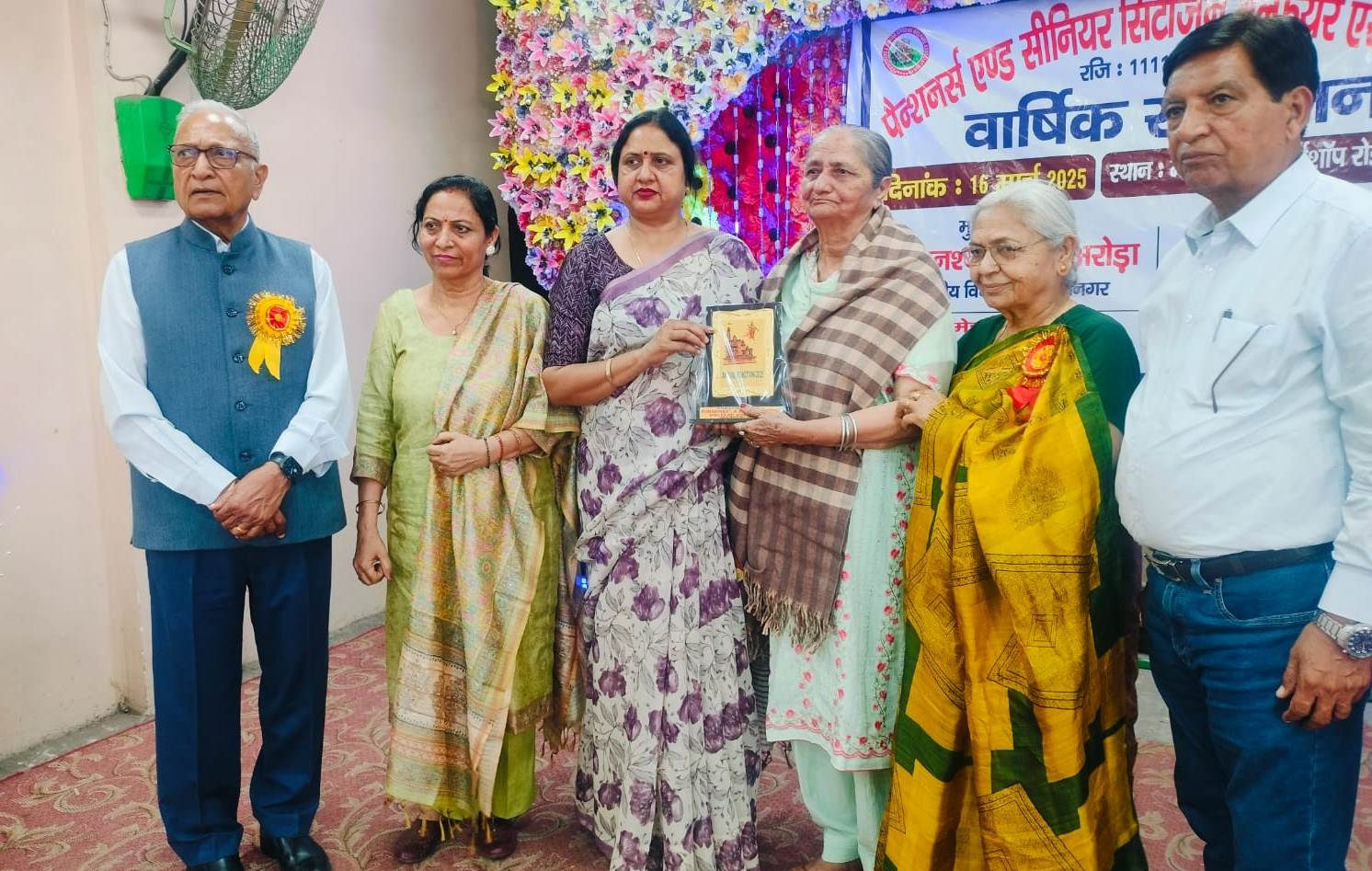 वरिष्ठ नागरिकों को सम्मानित करते अतिथि व उपस्थित सदस्य……………(डा. आर. के. जैन)