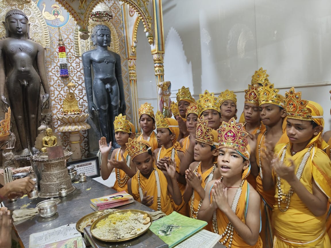 कार्यक्रम का प्रारंभ सातवीं सदी के भोंयरे के साथ भू गर्भ से प्रकटित मनोकामनापूर्ण अतिशयकारी भगवान अरनाथ स्वामी के अभिषेक एवं शांतिधारा के साथ हुआ । जिसमें गुरुकुलम के बच्चों द्वारा बड़े ही उत्साह पूर्वक अपनी अपनी सामर्थ्य के अनुसार श्रद्धा राशि समर्पित करके भगवान अरनाथ जी कि शांतिधारा की एवं तत्पश्चात दैनिक पूजन के साथ भगवान पारसनाथ स्वामी का विधान हुआ।
