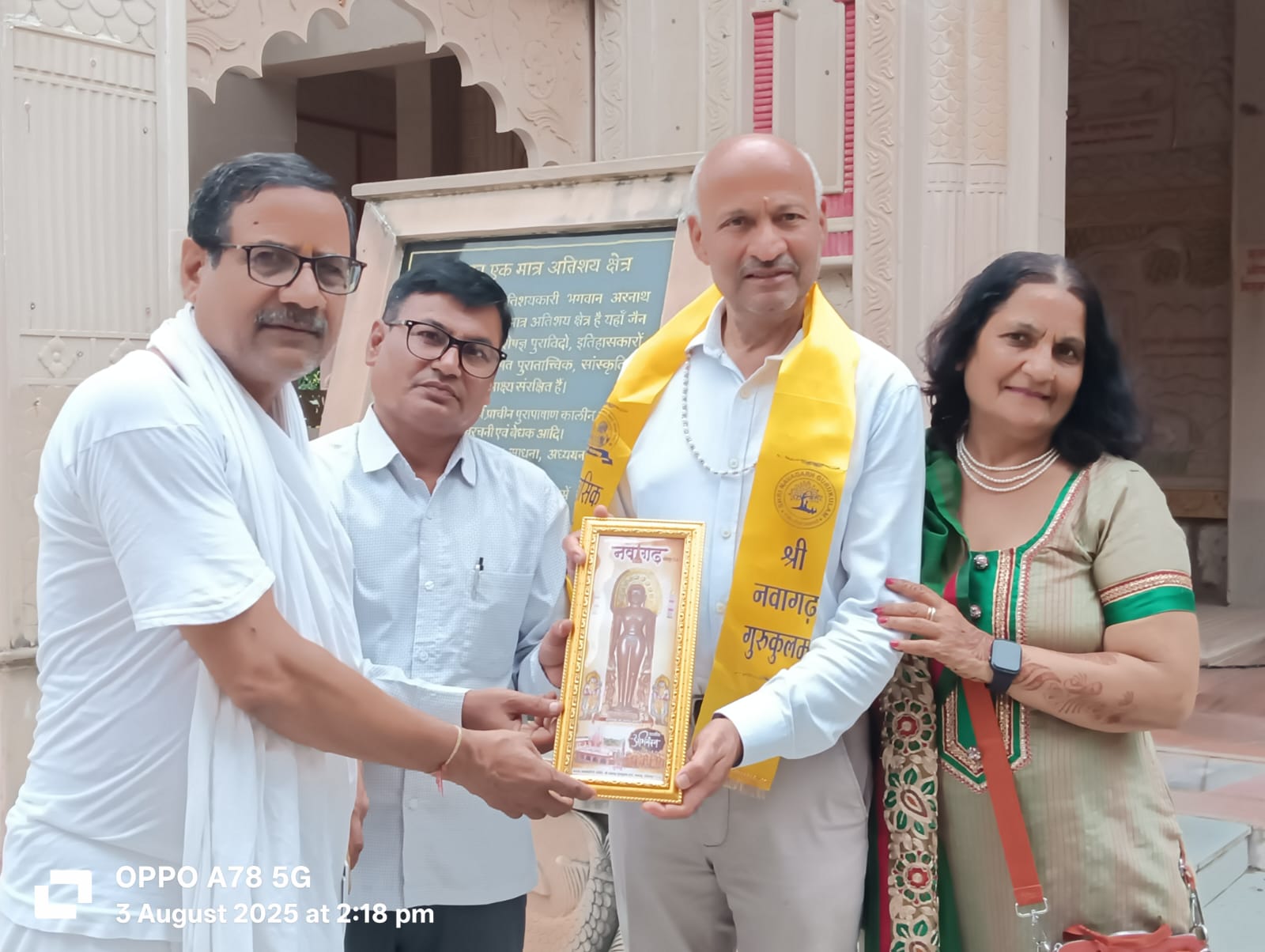 अतिशय क्षेत्र नवागढ़ में रविवार को एक विशेष आध्यात्मिक दृश्य देखने को मिला जब सिडनी (ऑस्ट्रेलिया) में निवासरत भारत प्रवासी श्री राजपाल जैन ने अपने परिवार सहित इस पवित्र स्थल के दर्शन किए। श्री जैन पिछले कई वर्षों से ऑस्ट्रेलिया में निवास कर रहे हैं, लेकिन अपनी जड़ों से जुड़े रहने की भावना ने उन्हें भारत की तीर्थयात्रा के लिए प्रेरित किया। ललितपुर के प्रसिद्ध जैन अतिशय क्षेत्र नवागढ़ में पहुंचकर उन्होंने श्रद्धा भाव से भगवान अरनाथ के दर्शन किए और मंदिर परिसर में विशेष पूजन-अर्चन भी किया।