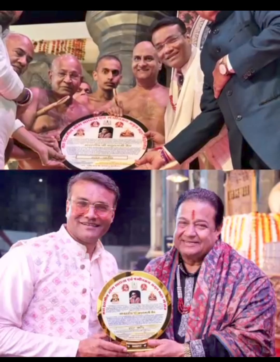 मां अहिल्या की नगरी के जैन गोरव अनुराग आकाशवाणी उद्घोषक अपनी आवाज के शहंशाह दिगंबर जैन सोशल ग्रुप फेडरेशन के कार्यकारणी एवं समंग्र जैन समाज के रत्न अनूराग जैन को भारत के भजन सम्राट श्री अनूप जलोटा जी द्वारा“स्वर ऋषि” की उपाधि से अलंकृत होने पर इंदौर दिगम्बर जैन समाज के वरिष्ठ समाजसेवी डॉ जैनेन्द्र जैन महावीर ट्रस्ट के अध्यक्ष अमित कासलीवाल फेडरेशन के राष्ट्रीय अध्यक्ष मनोहर झांझरी हंसमुख गांधी टीके वेद राकेश विनायका राजेश जैन दद्दू भुपेंद्र जैन विपुल बाझलं मयंक जैन एवं फेडरेशन की राष्ट्रीय शिरोमणि संरक्षिका श्रीमती पुष्पा कासलीवाल श्रीमती रेखा जैन श्रीमती मुक्ता जैन आदि समाज जन ने हार्दिक बधाई दी।