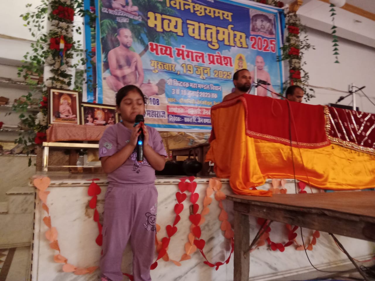 की धर्म सभा में दिगंबर जैन आदिनाथ जैन संस्कार पाठशाला की छोटी सी बालिका 7 वर्षीय द्वितीय क्लास पैराडाइज स्कूल में पढ़ने अयासी