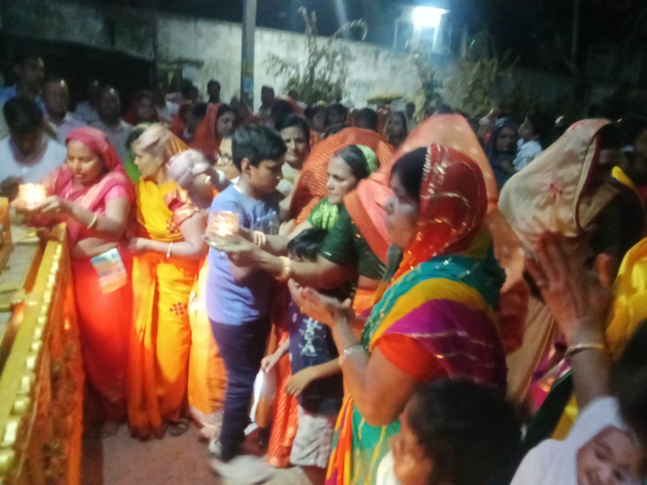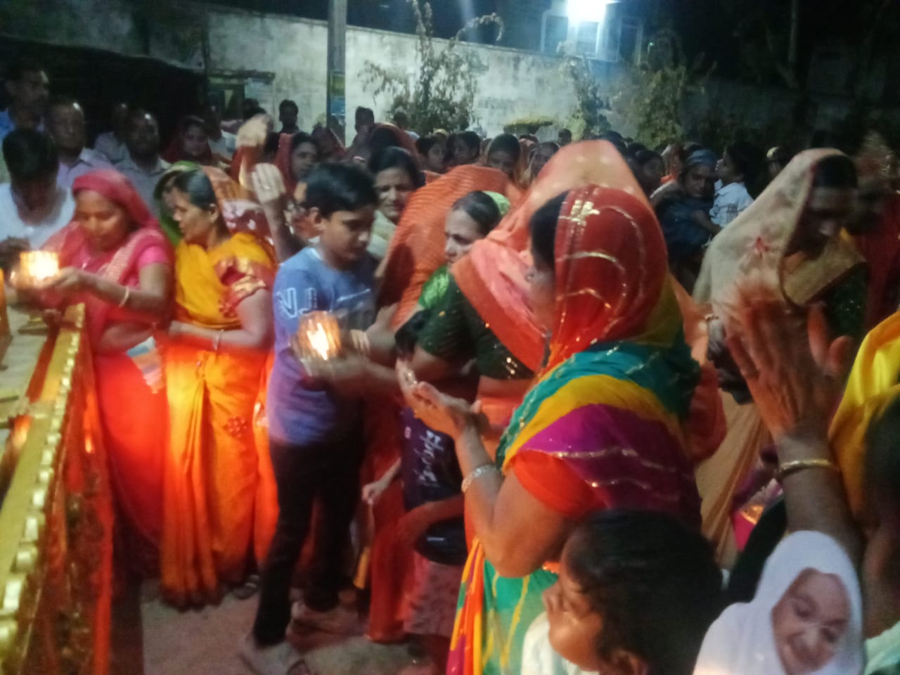 जगह जगह पर समाज के लोगों द्वारा पुष्प वर्षा की गई एवं दिगंबर जैन समाज के परिवारों ने भगवान की आरती कर पुण्य लाभ प्राप्त किया