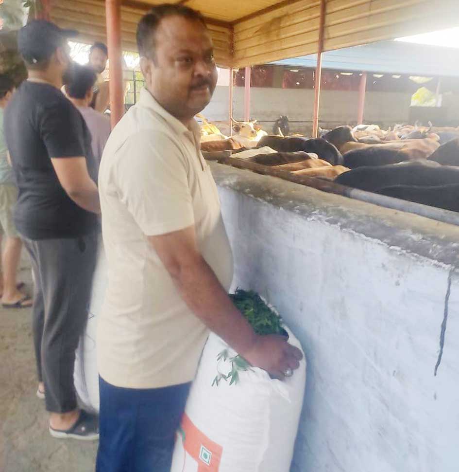 स्वयं सेवियों ने की गऊ माता की सेवा, गऊशाला पहुँचाया 2 हजार किलो चारा